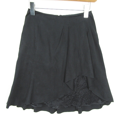 プライベートレーベル Private label スウェード風 フレア スカート 膝丈 S ブラック レース kz13390 レディース