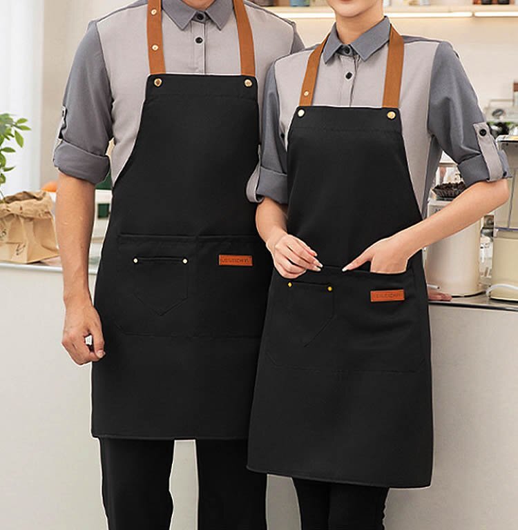 ◆防水エプロン 撥水 前掛け 肩紐長さ調節可 複数ポケット付き 水をはじく素材 通気性 料理 DIY 園芸 掃除 厚手 位置調整可能 通気性 男女兼用 業務 家庭用 パン屋、カフェ、居酒屋、花屋、ペットショップ、保育園などに【ブラック】WPAP808