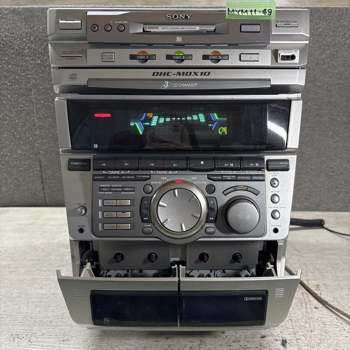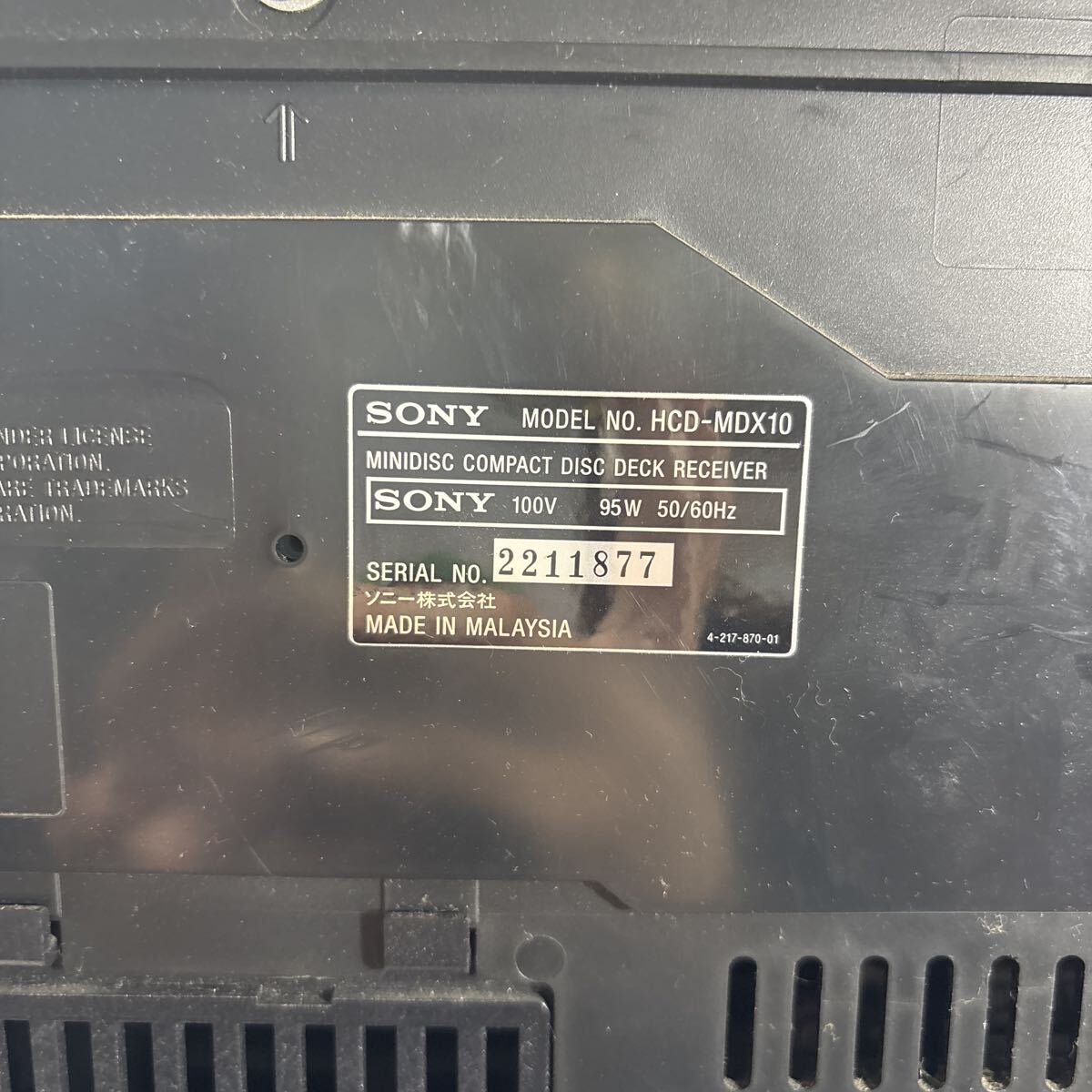 MYM11-48 激安 SONY HCD-MDX10 MINIDISC COMPACT DECK RECEIVER 通電、電源オン、オフOK 中古現状品 ※3回再出品で処分