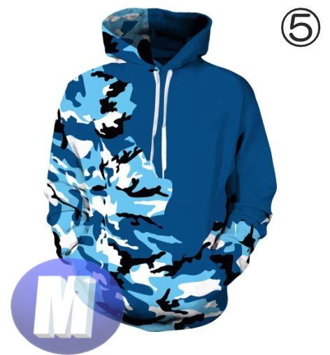 フード付き 迷彩パーカー カモフラ ブルー M トレーナー アウター 防寒 n721