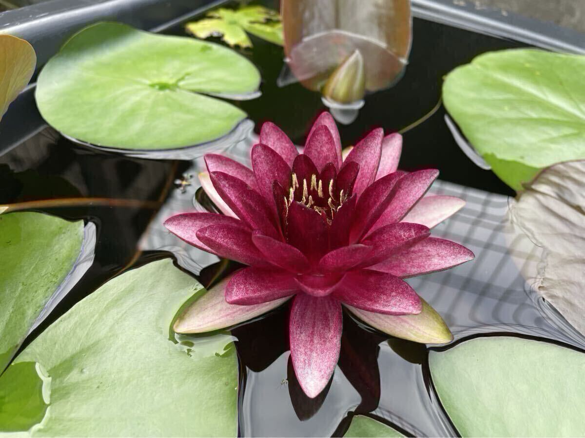 こちらの品種は独特な濃い赤色の睡蓮になります。