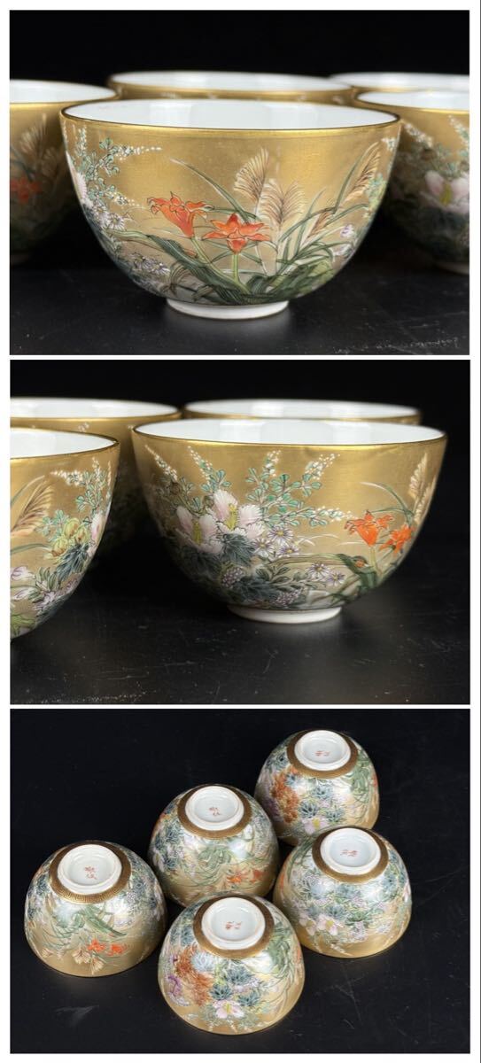 商品名 : 旧家買取品 超絶技巧 九谷焼 鏑木造 金彩細密花草画煎茶器揃 共箱 保証品 煎茶道具