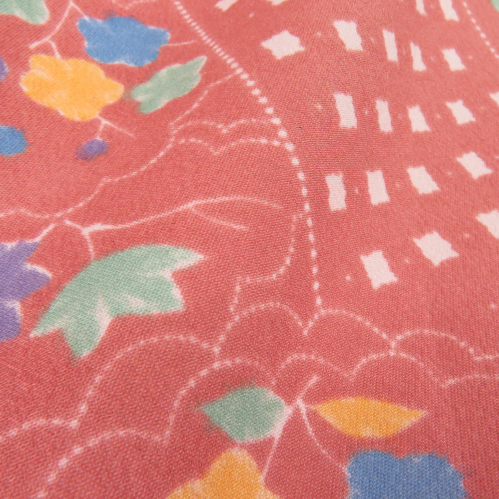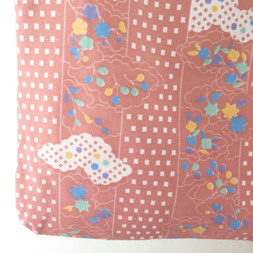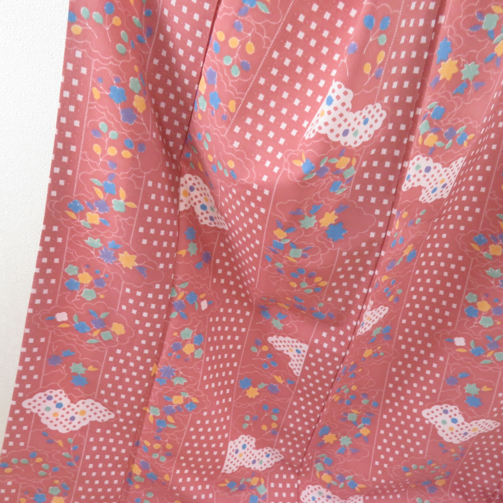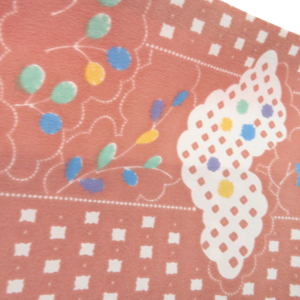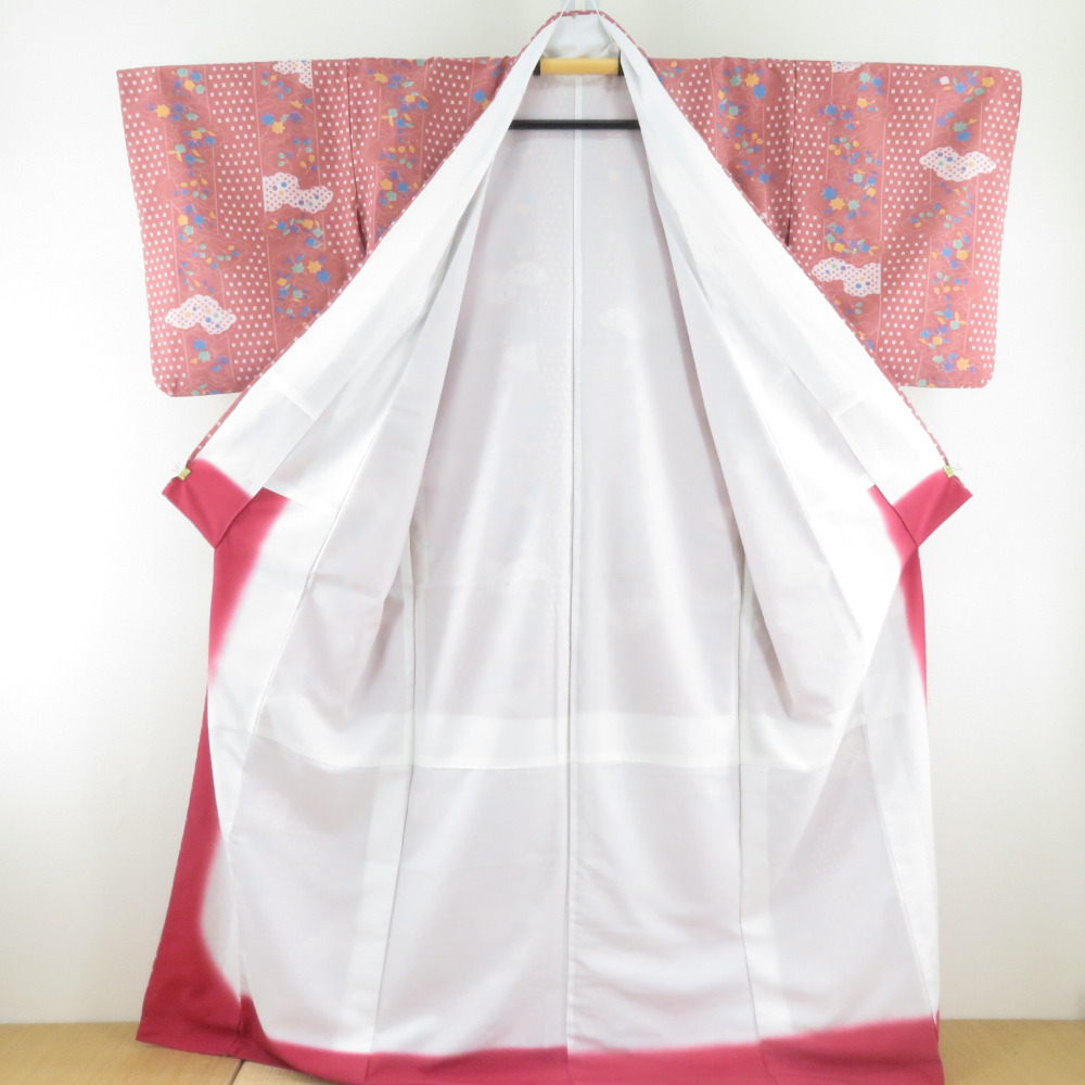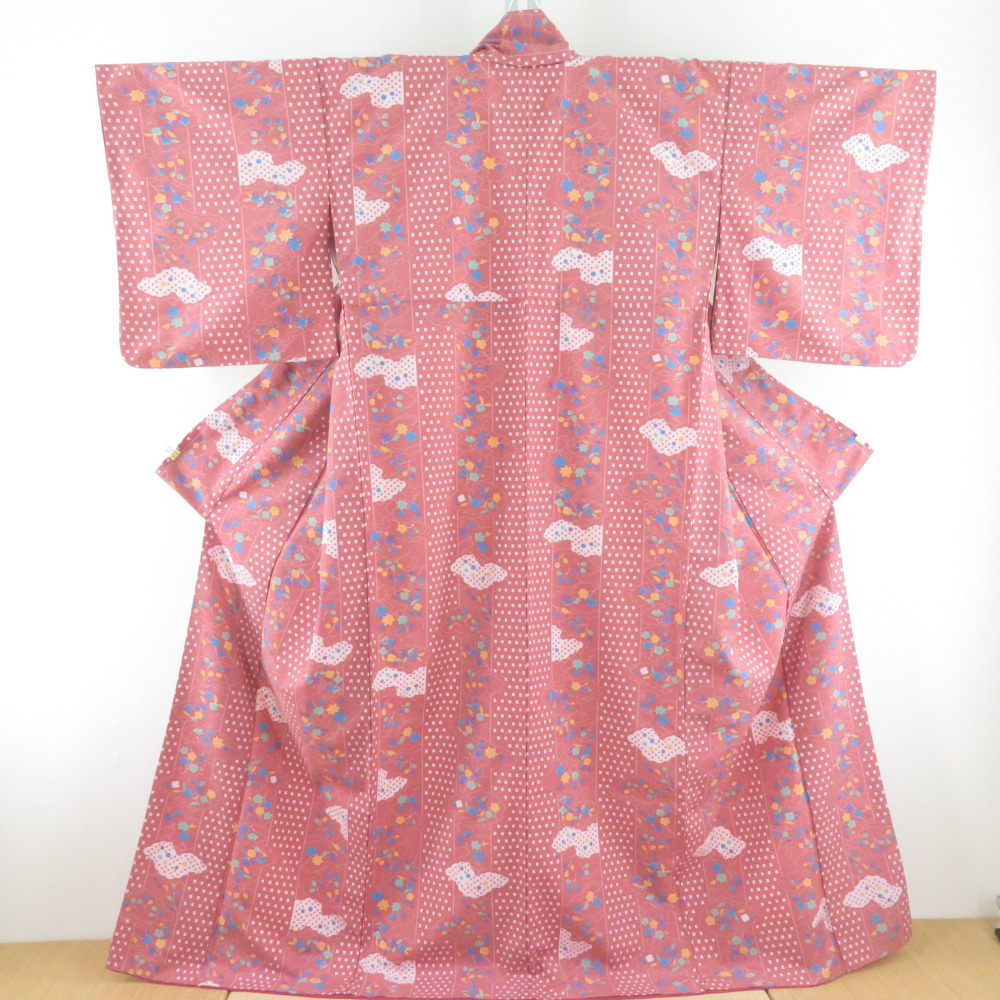 | 小紋 梅に紅葉柄 薄赤色 袷 広衿 ポリエステル 洗える着物 仕立て上がり カジュアル 身丈164cm |