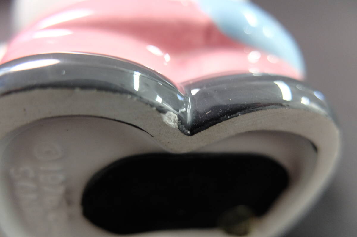 #9998 ハローキティー 陶器製 貯金箱 (天使の羽根=美品・郵便局 制服ピンク=難有り) 高さ:約14cm サンリオ ★商品詳細★ ・譲渡品のため、入手時期などの詳細は分かりかねます。 ・陶器製 ・高さ:約13~14cm ・天使の羽根キティは、目立った傷などは見当たらず綺麗なお品物です。 ・郵便局 制服ピンクキティは、顔の横にひび割れがございます。 (画像にてご確認下さい。) ・素人による検品ですので見落としの可能性もございます。 ・一度は人の手に渡った商品であることにご理解いただける方のみご入札をお願いいたします。 ・写真の物が全てです。 ※いたずら入札防止のため、新規IDの方・悪い評価のある方はご入札前に質問欄よりコメントをお願いいたします。ご連絡がない場合はこちらで削除させていただく場合がございます、あらかじめご了承くださいませ。 ★注意★ ※こちら譲渡品です。当方、専門家ではないため、説明が簡単になっています。細部まで気にされる方や、神経質な方、完璧な商品をお求めの方のご入札はご遠慮願います。中古品であることをご了承いただいた上で、ノークレーム・ノーリターンにてご判断・ご入札をお願いします。 ※現状でのお渡しとなり、写真では確認出来ない小傷・汚れ等がある恐れがあります。また、デジカメにて撮影しております。出来る限り現物に近い状態の撮影を志しておりますが、色味などに若干の相違がある場合もございます。 上記をご了承の上、入札をお願いいたします。 ☆他にもジャンル問わず多数出品しておりますので是非ご覧ください☆ |