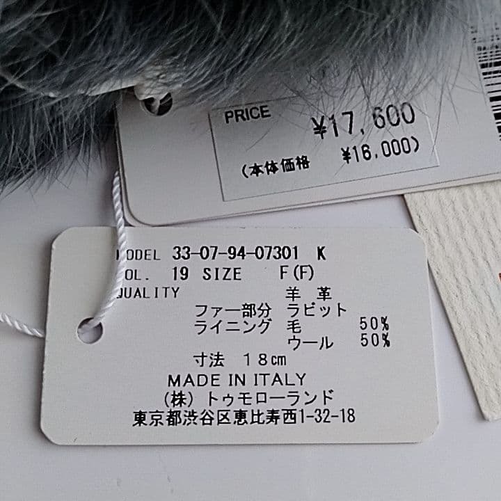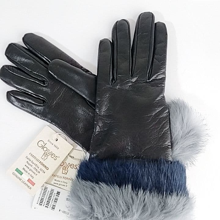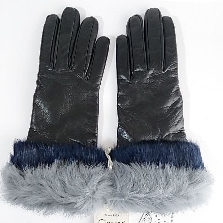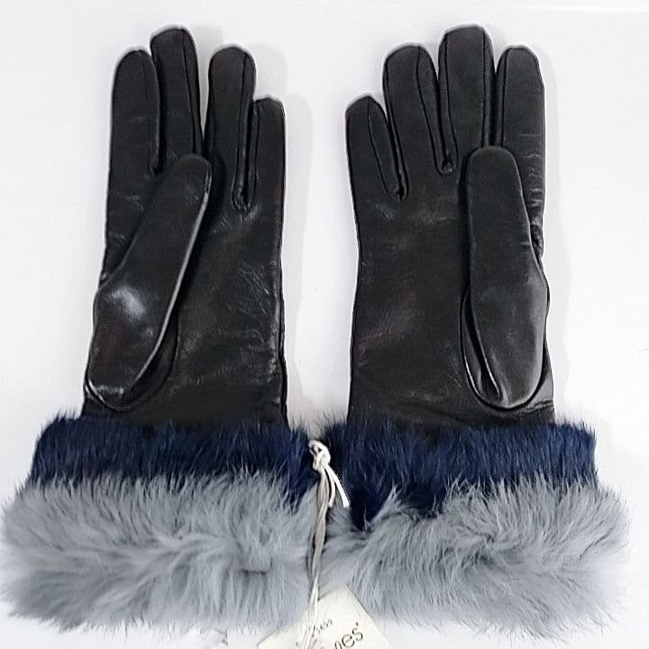 ■ 新品 タグ付き Gloves グローブス イタリア製 レザー手袋 柔らかい羊革 × ラビットファー × ウールライニング 厚手