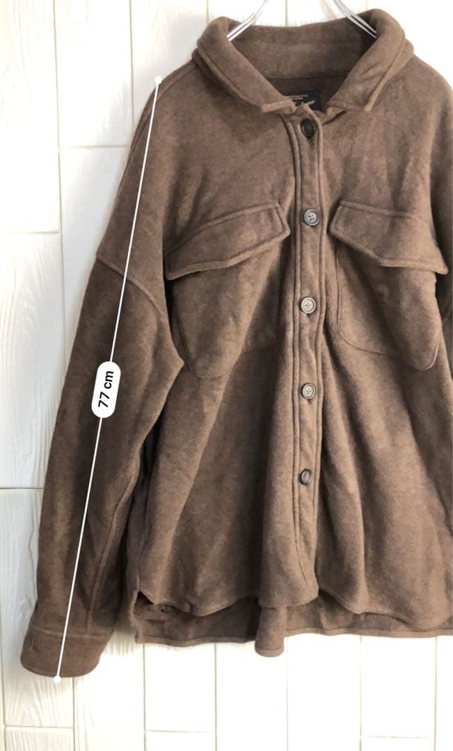 柔らかいブラウンフリース素材のジャケット、肩幅43cmで快適な着心地。