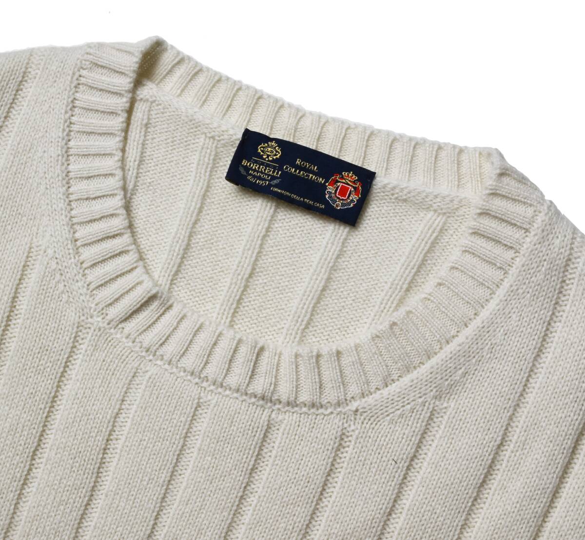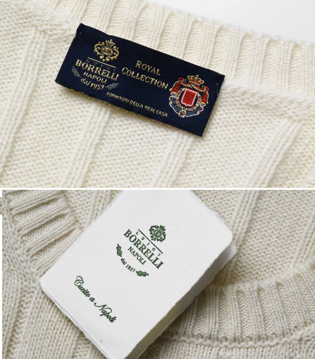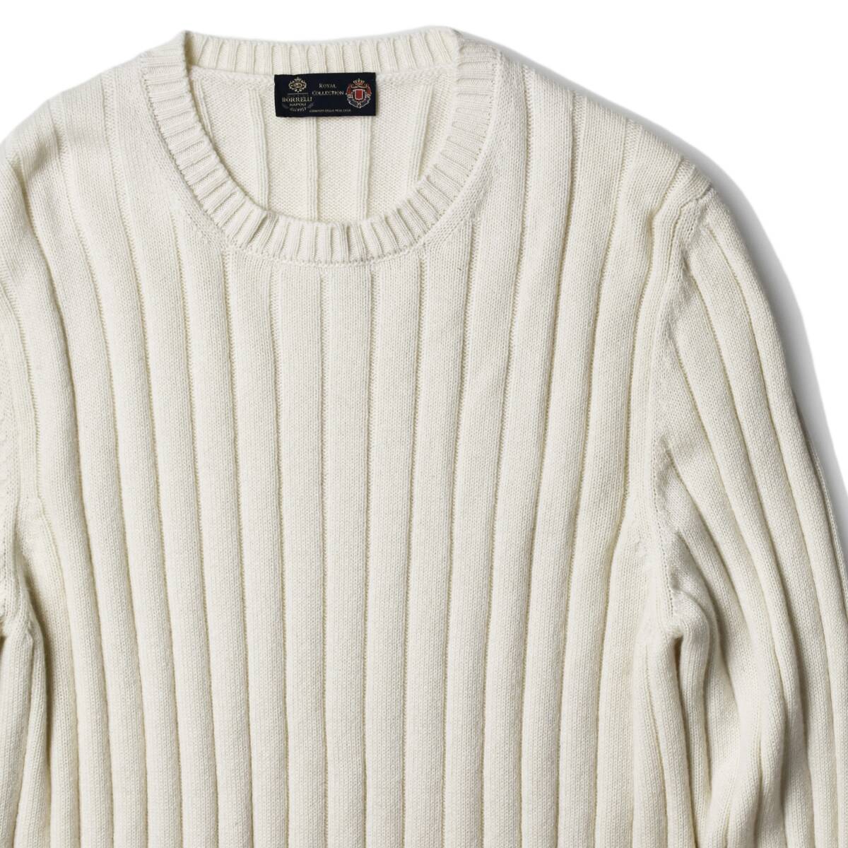 20,6万【ルイジ ボレッリ 最高峰モデル 新品】エルメス,シャネルが惚れ込む最上級スコティッシュカシミア100%◇淡色ワイドリブ編セーター