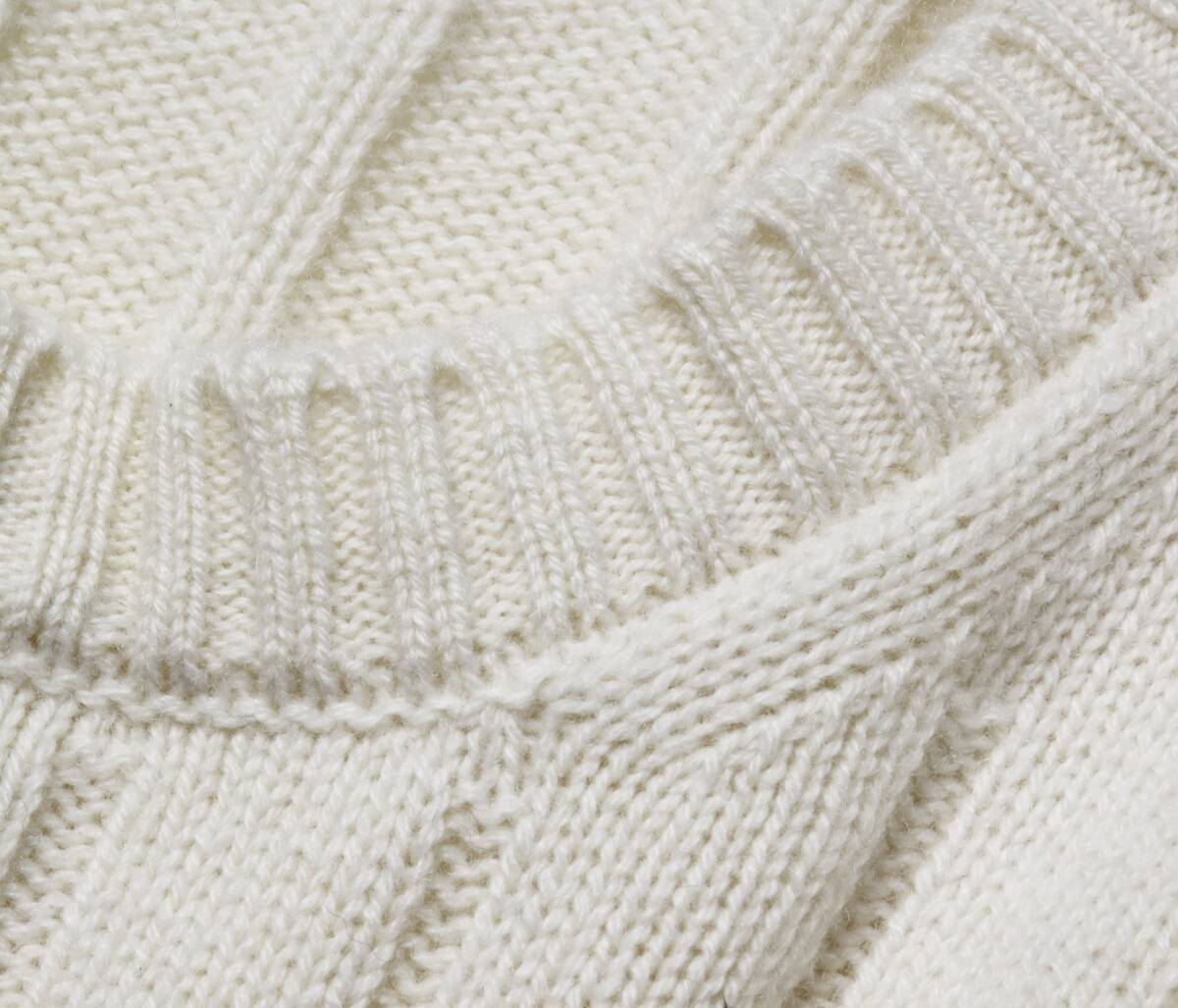 高価な2PLY(2本の糸を撚って1本にした糸)を使用した『ちょうど良い厚さのワイドリブ編み』