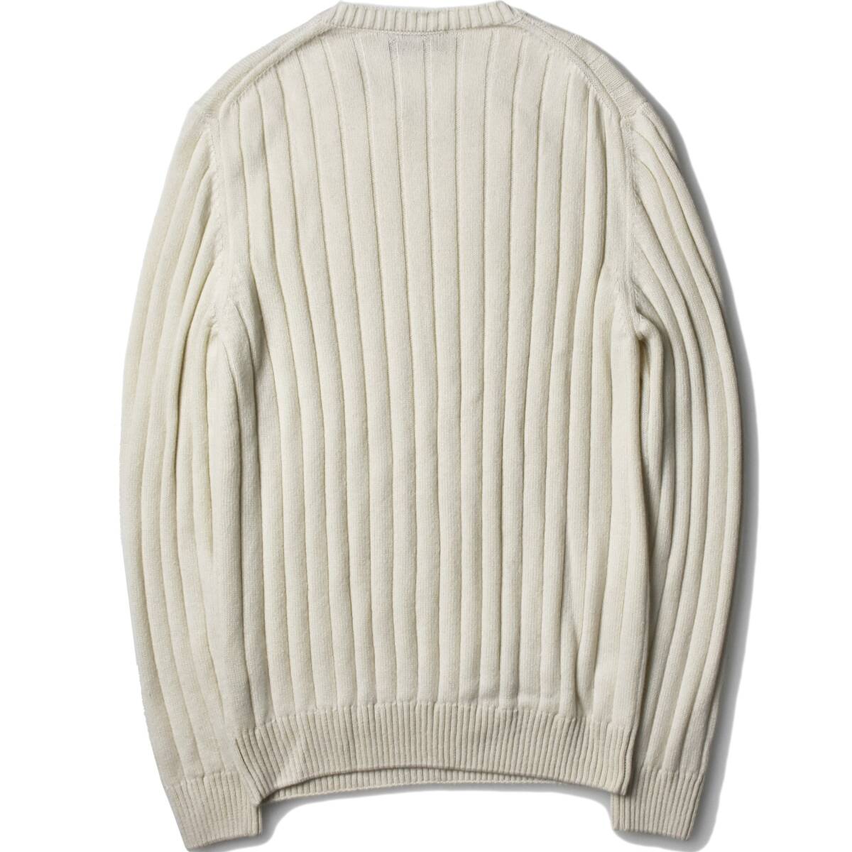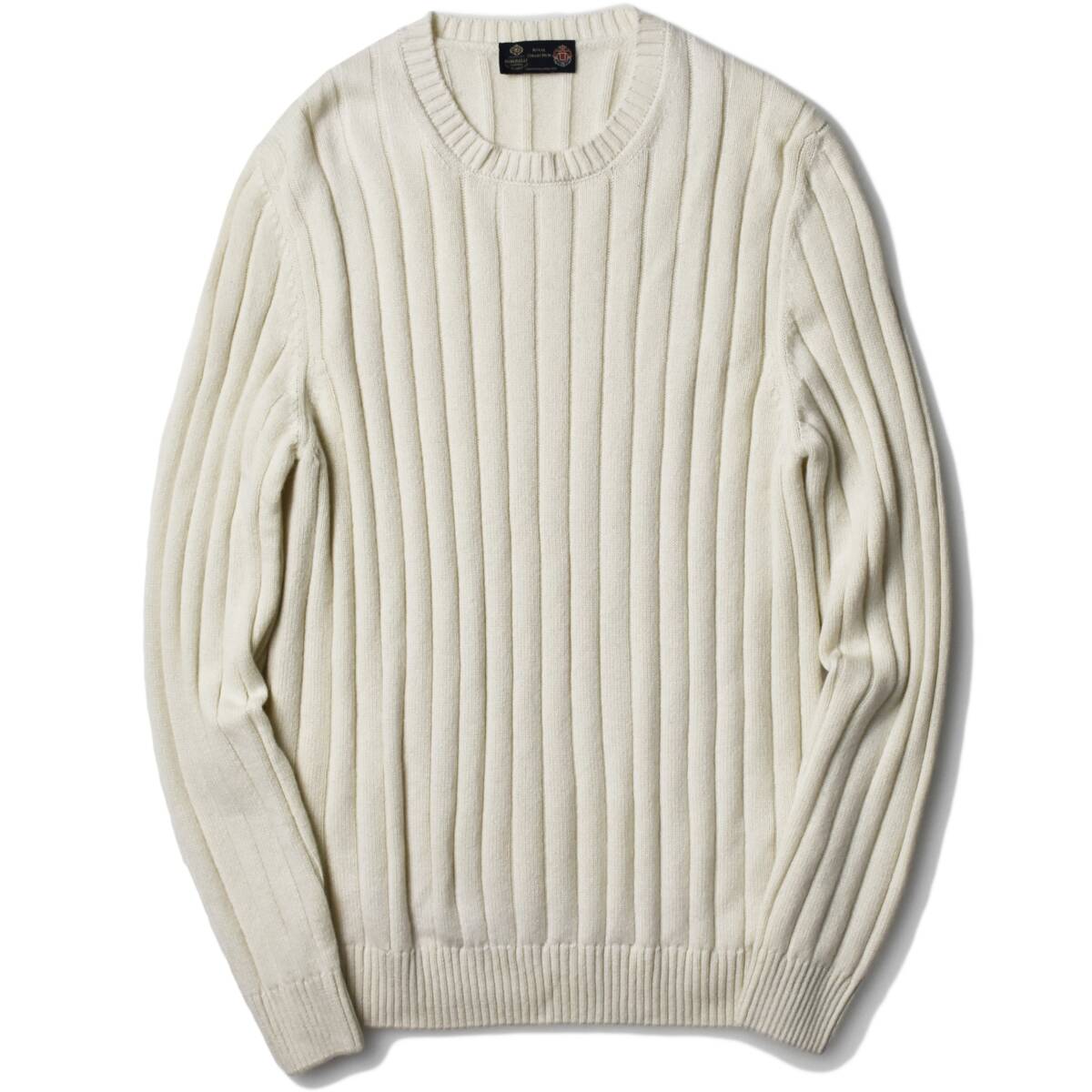 プレーンな編み地のシンプルなニットではなく、 ストライプの表情を作り出す「ワイドリブ編み」を採用。 凹凸感のあるストライプ柄のリブ編みを採用することで ハイゲージニットの合わせやすさはそのままに、ムードある着こなしが楽しめる¨脱クラシック¨がポイント。 ソリッド(無地)だとどうしても着こなしが単調になりがちですが、こんな¨編み¨を採り入れた一枚なら、 コーディネートにも奥行きが生まれるはずです。