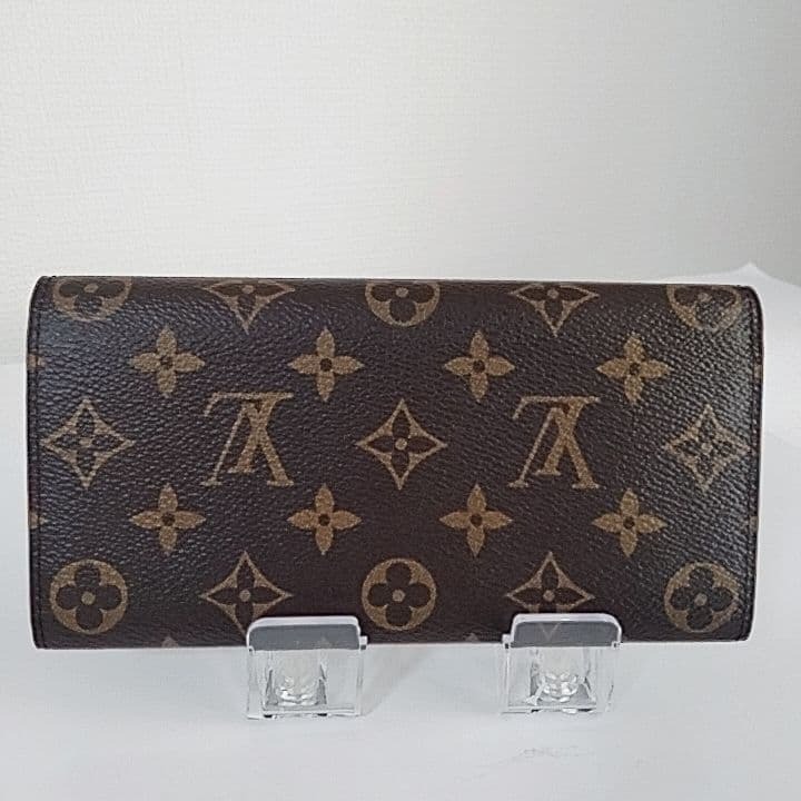 ルイ・ヴィトンを象徴するモノグラムキャンバスに、女性らしいピンクのボタンがアクセントになったエレガントな長財布です。