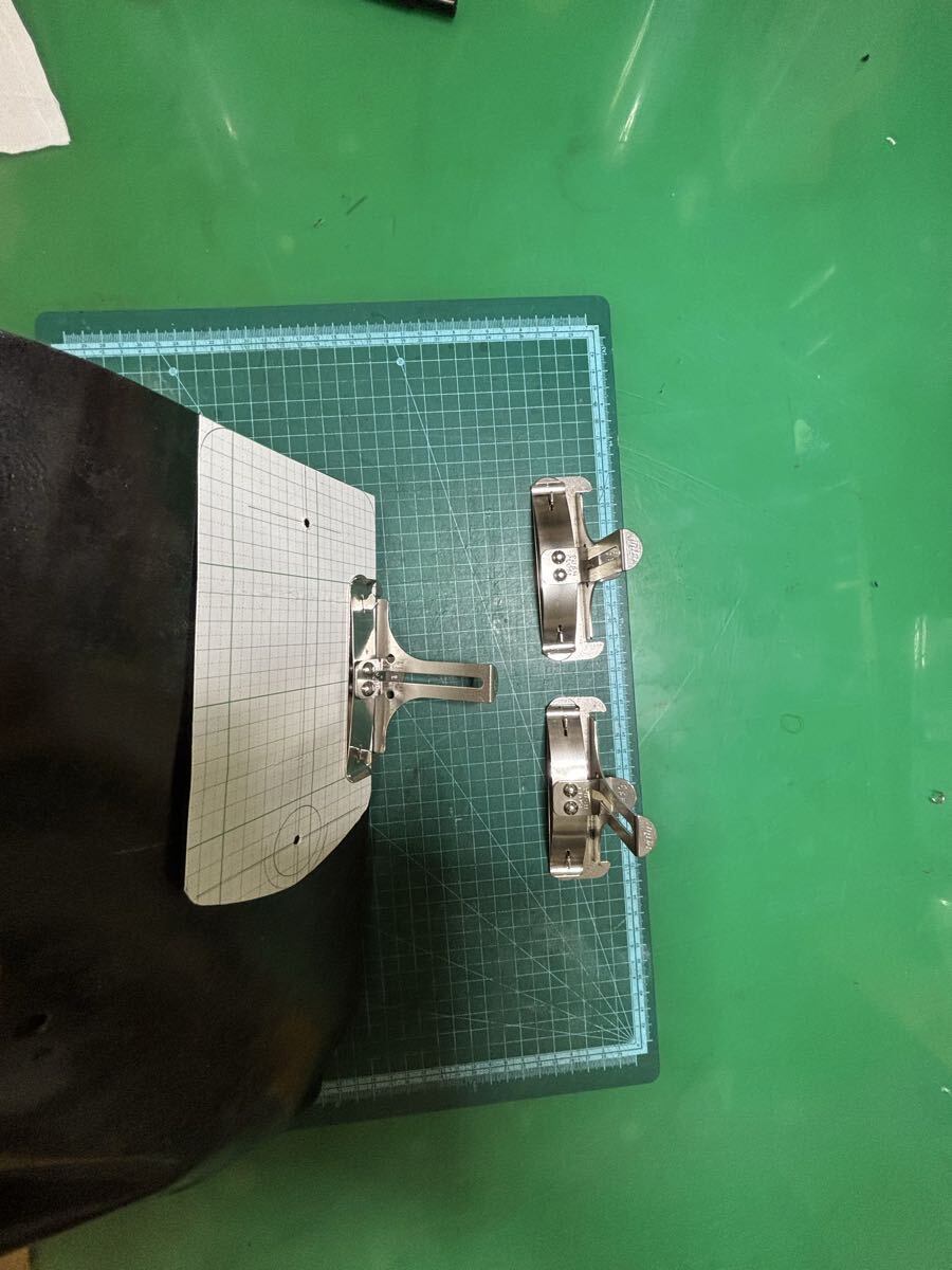 取り付け例の写真を載せておきます、革、型紙、マットは発送しません。