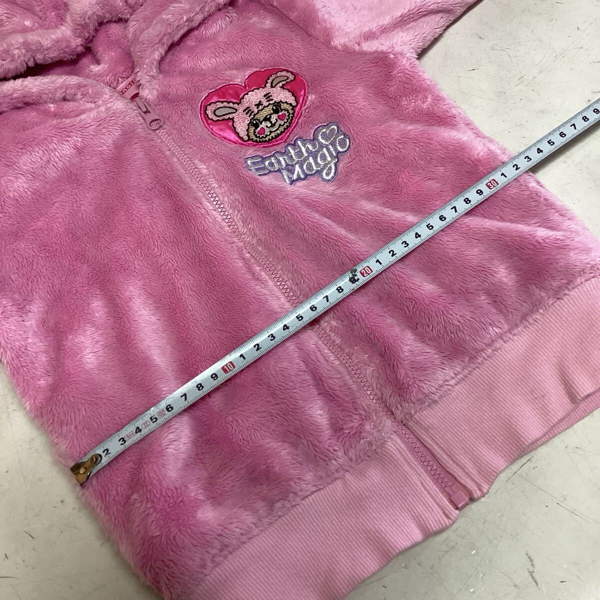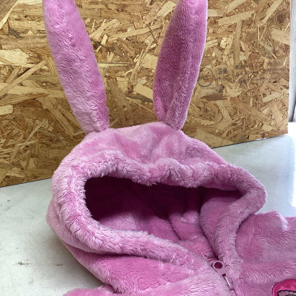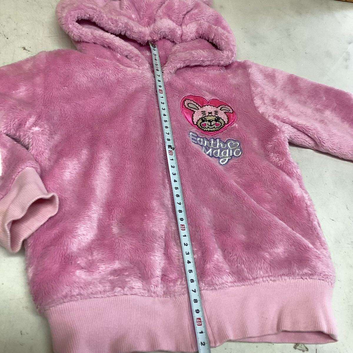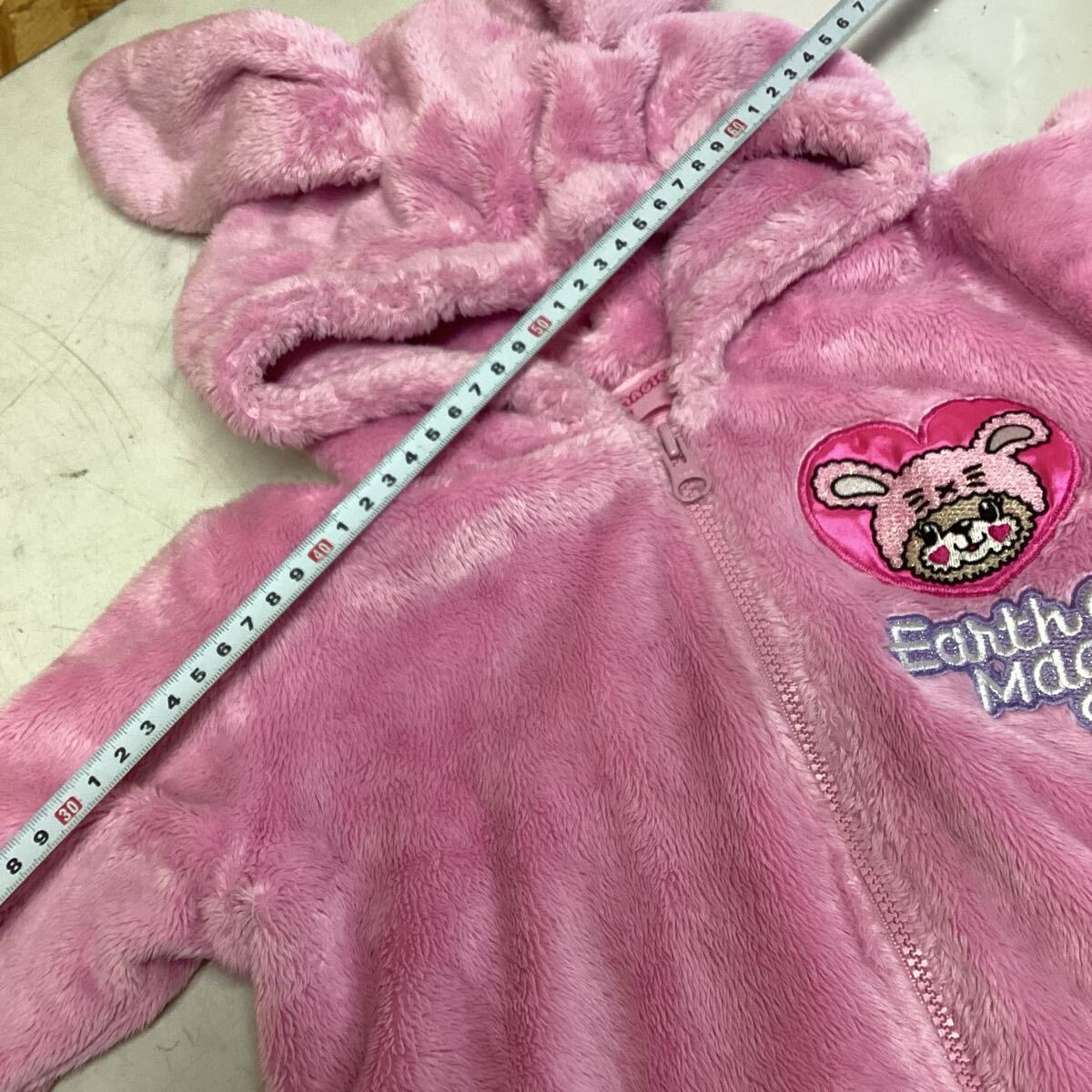 アースマジックのふわふわモコモコ素材が可愛い、ピンクのうさ耳付きパーカーです。