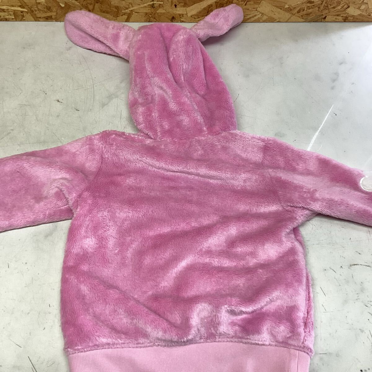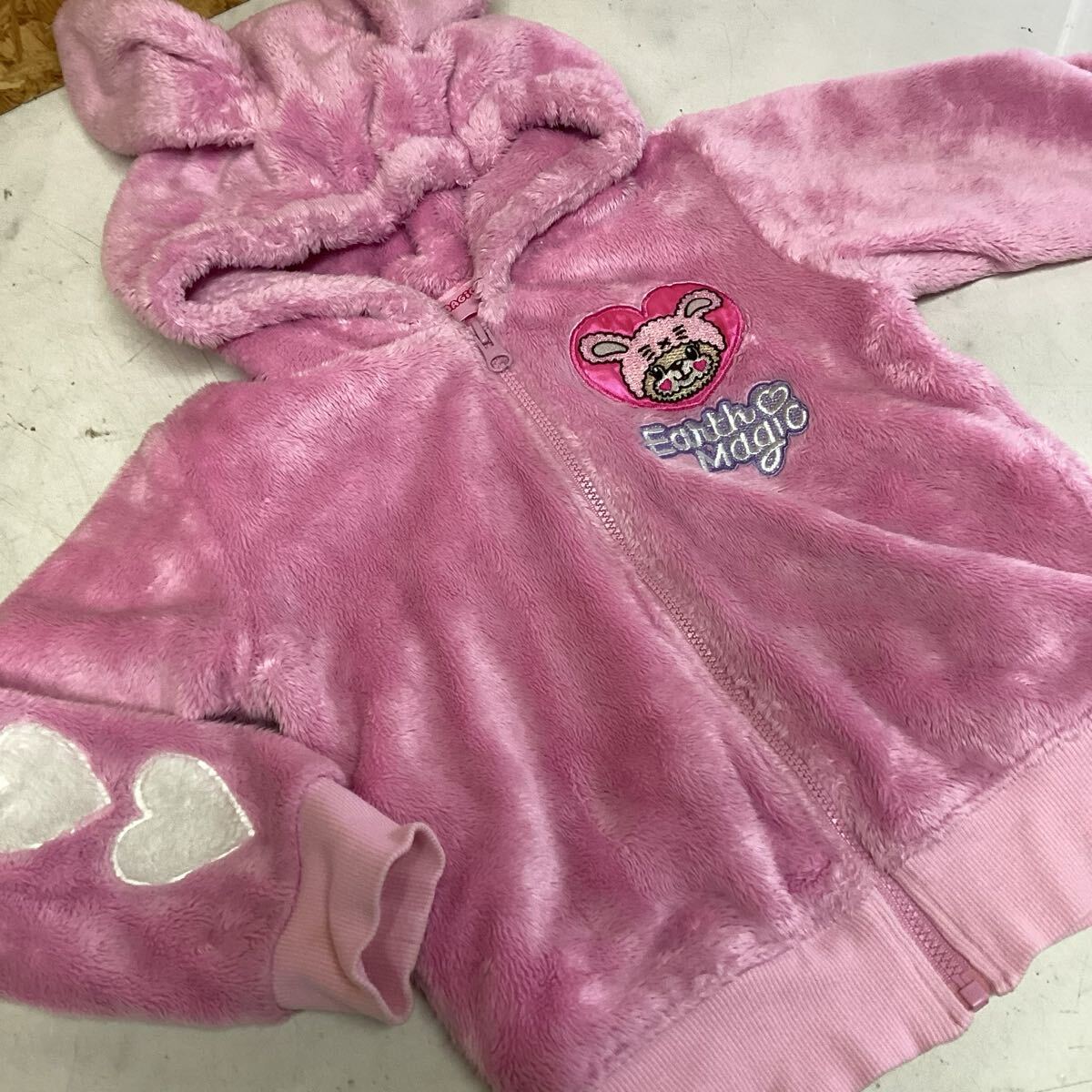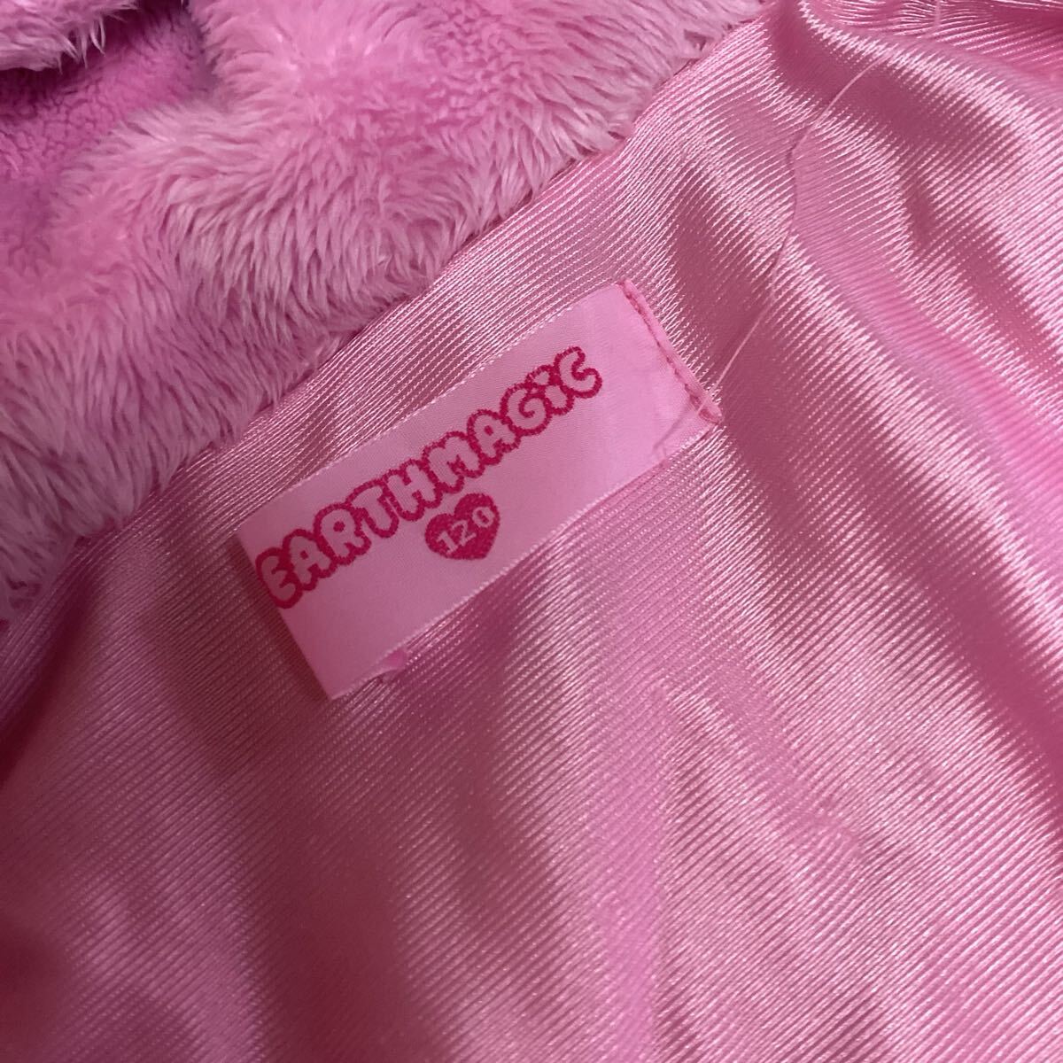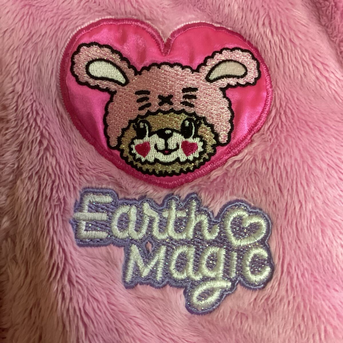 アースマジックのふわふわモコモコ素材が可愛い、ピンクのうさ耳付きパーカーです。