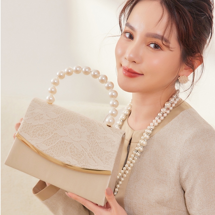 パーティーバッグ 結婚式 バッグ 大きめ 黒 パール フォーマルバッグ 結婚式 普段使い ハンドバッグ レディース JHB0072 ベージュ