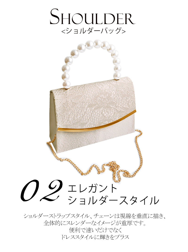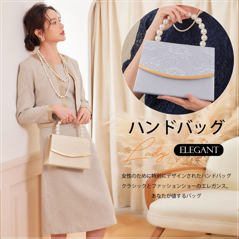 着こなしスタイリングは、ドレスにワンピース、パンツスーツや和装和服とも好相性。iPhone、スマホも入ります。