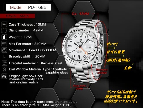 ■機能:GMT機能/日付/自動巻き/手巻き