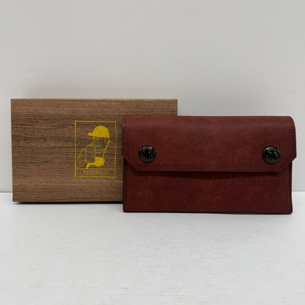 266-BY28) 未使用 BEERBELLY ESTATE コッチネーラ プエブロ ビアベリー エステイト レザー 赤茶 二つ折り 長財布 ロングウォレット ボタン