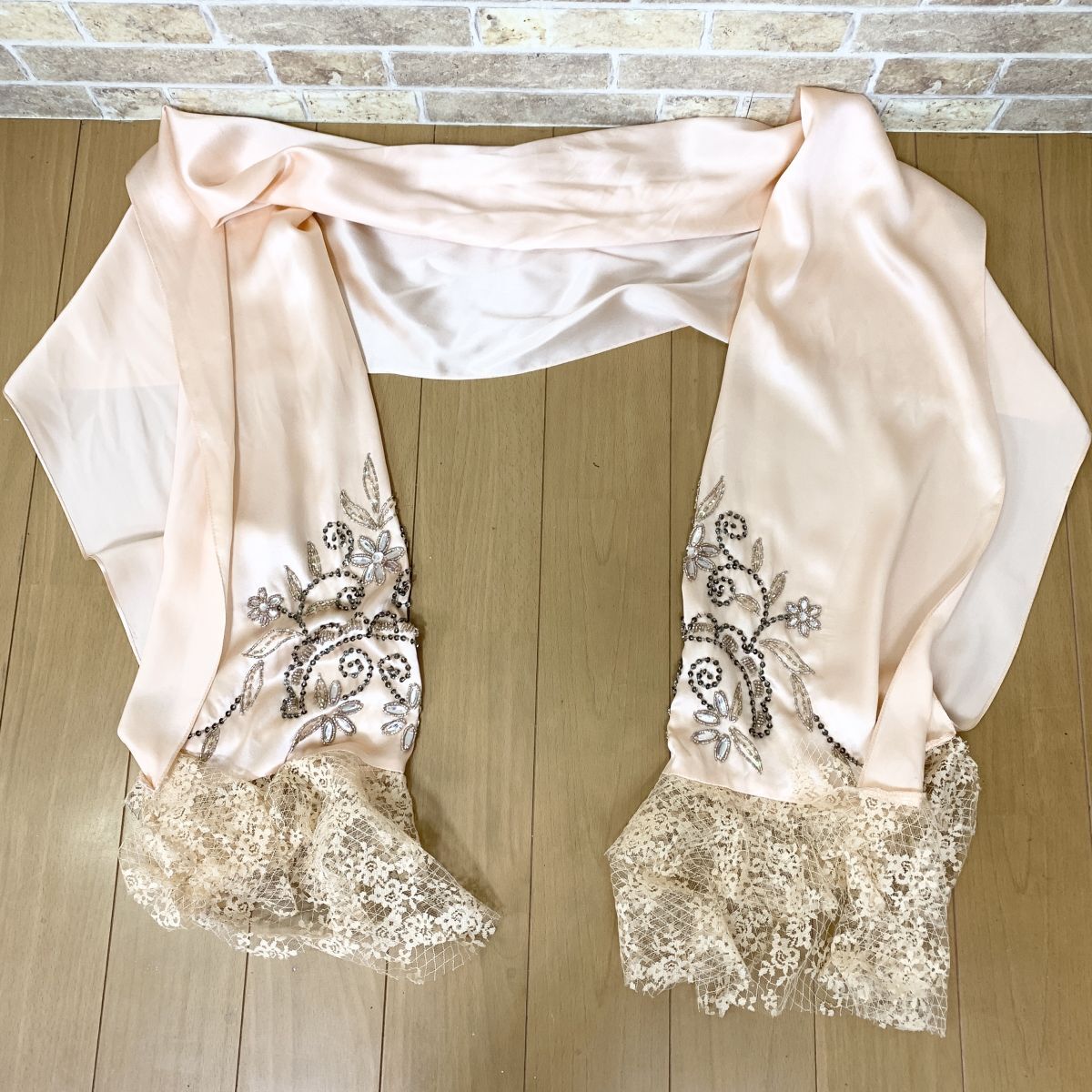 1円 ストール 【ネコポス可】 ピンク系 200×50 二次会 結婚式  発表会  フォーマル イベント 中古15892