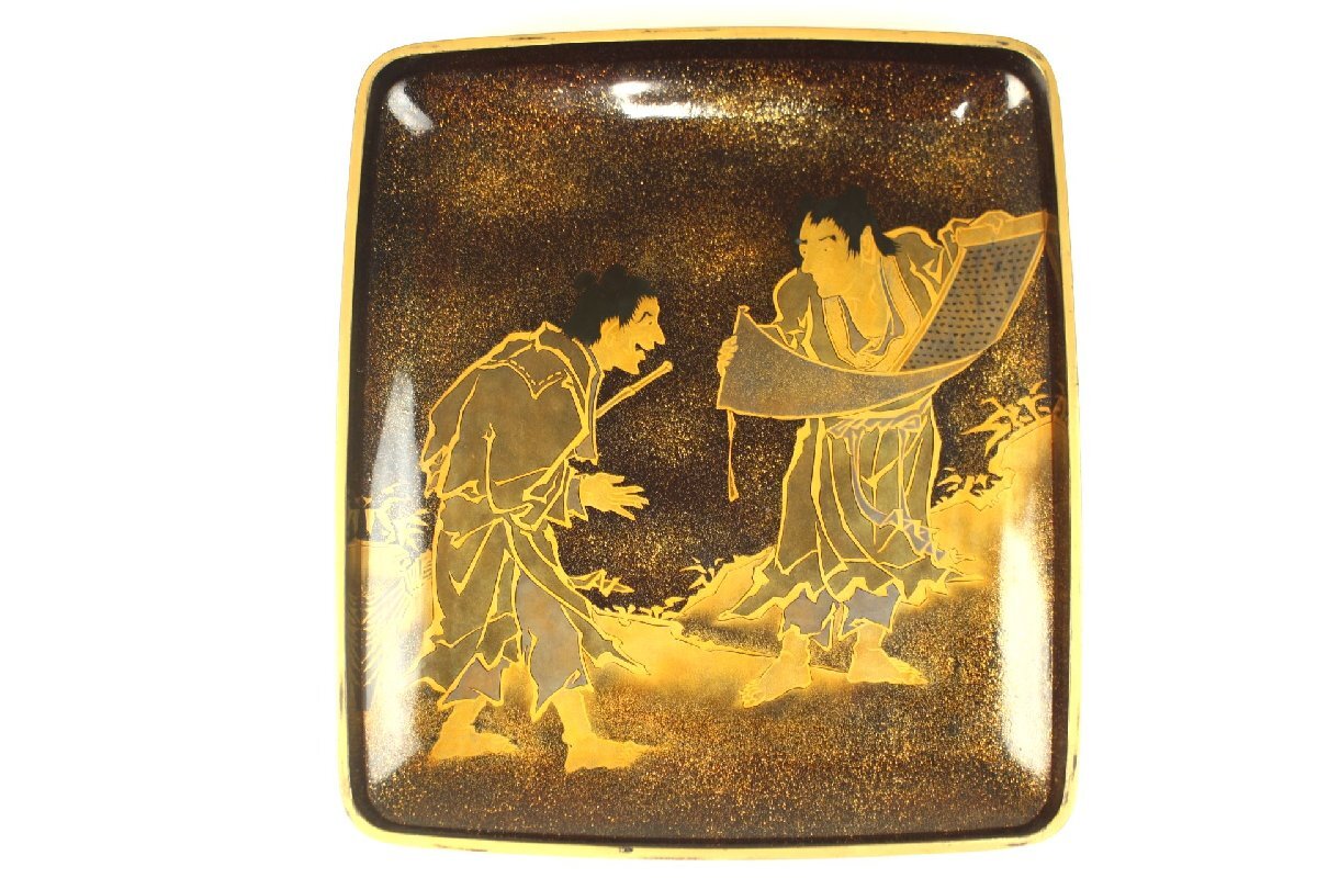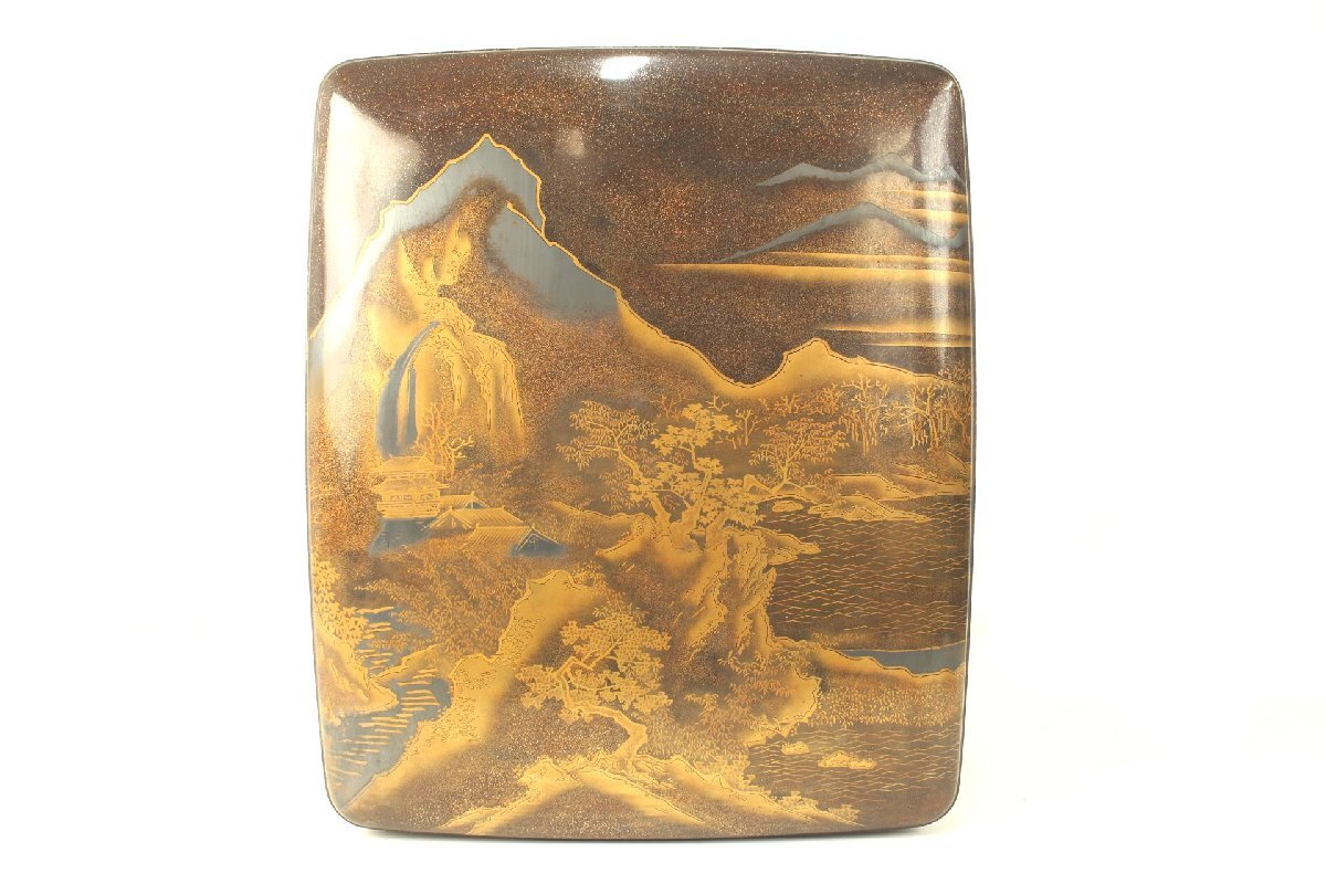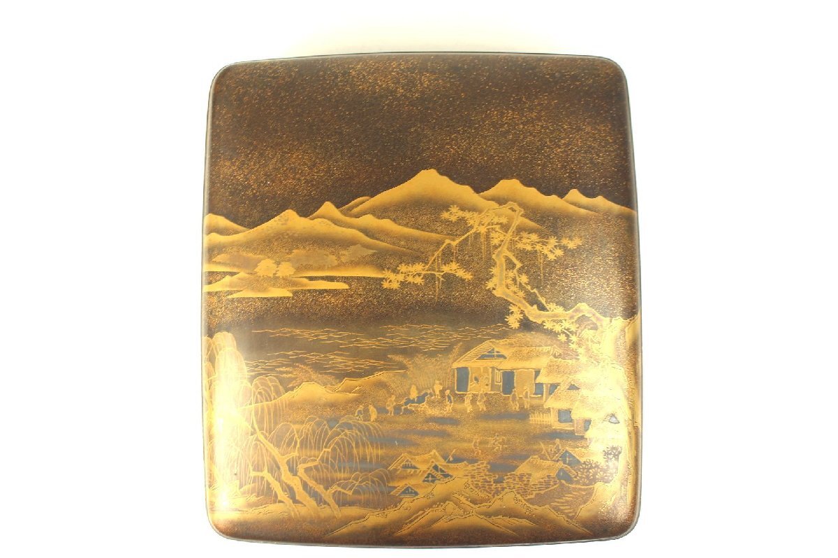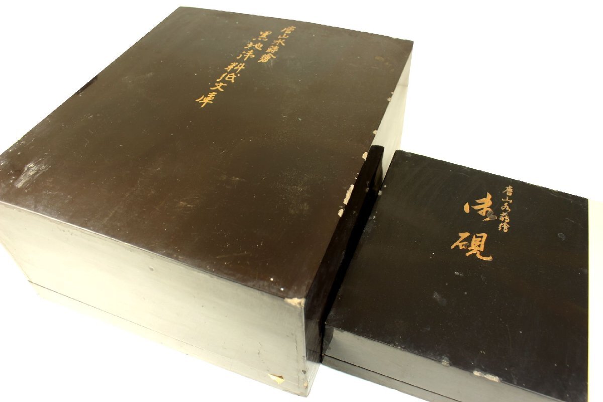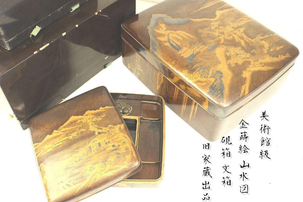 【董芸】江戸時代 美術館級 極上金蒔絵 唐山水図 見返寒山十得図 硯箱 文箱 旧家委託品