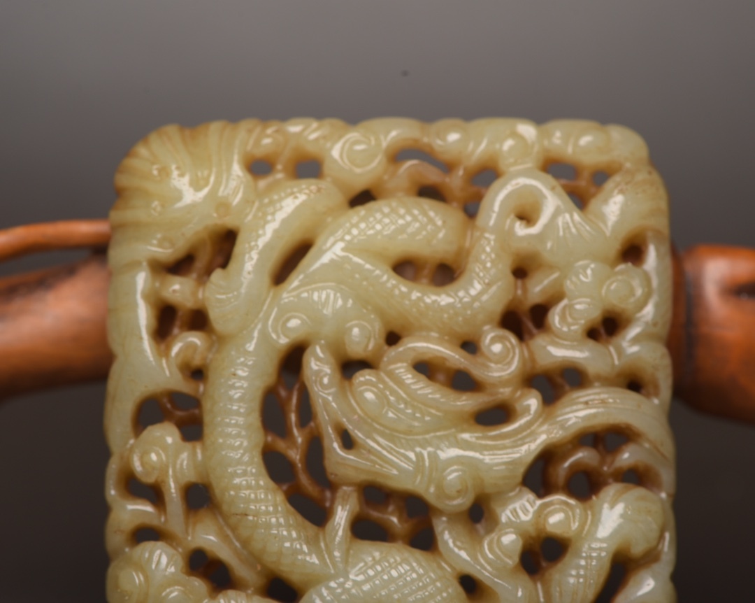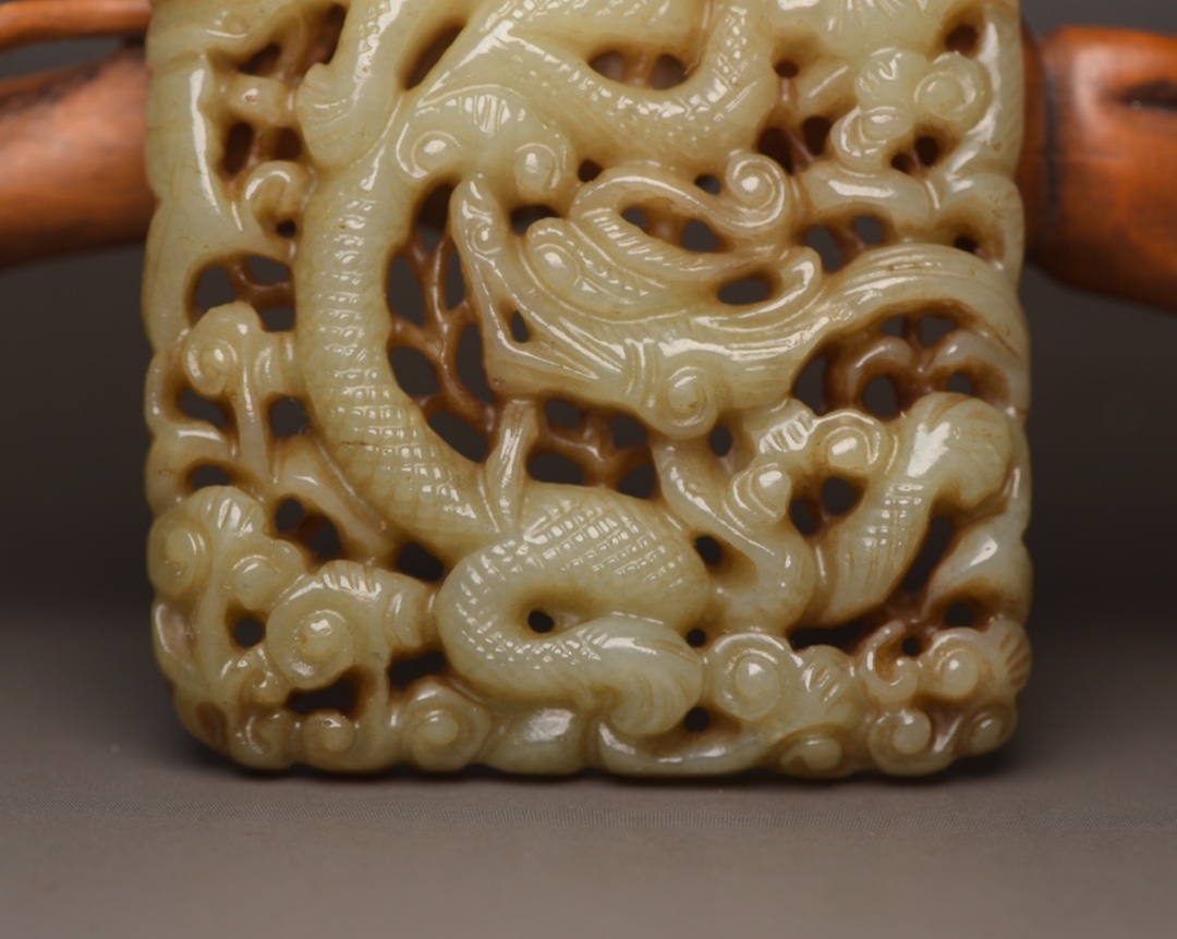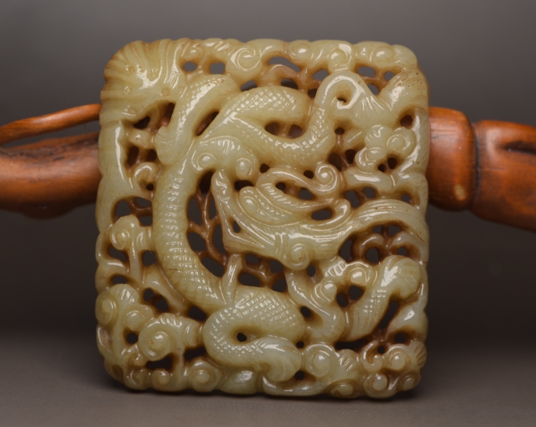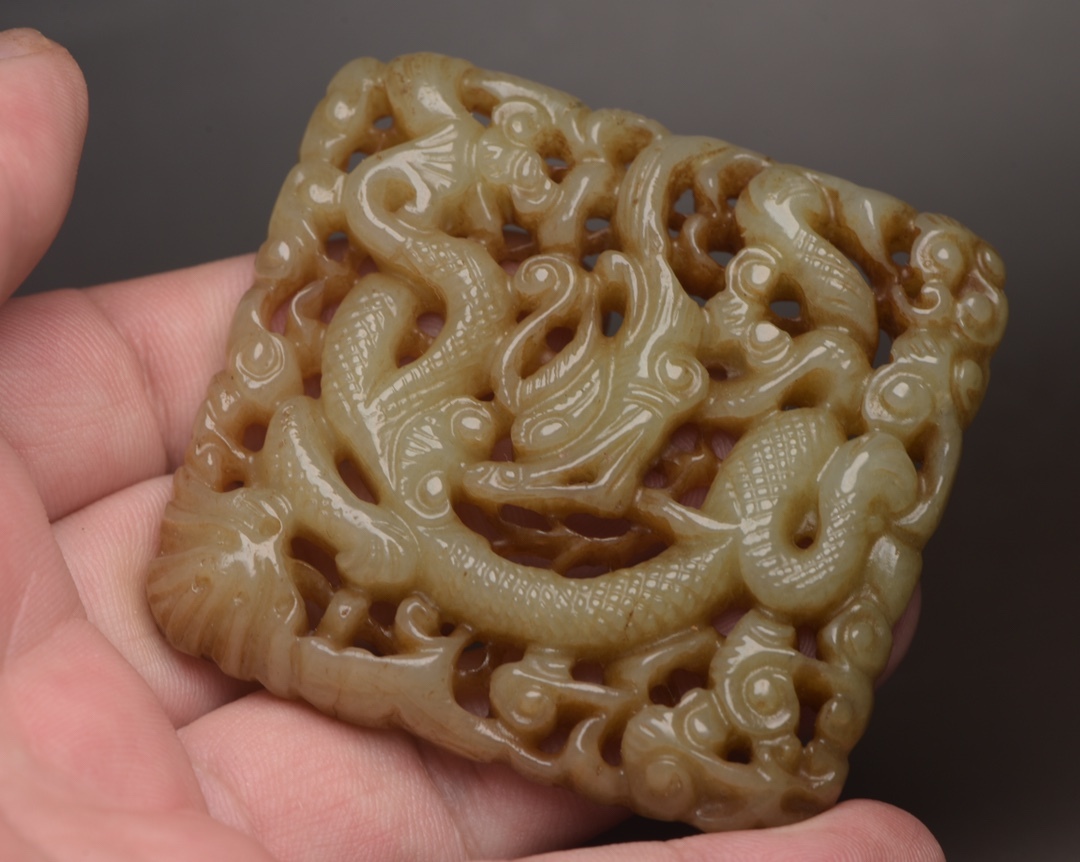 | 【蔵友館蔵品・和田玉製・細密彫・鏤空彫・龍牌・置物・賞物】・古董品・中国古玩・時代物・希少珍品・中国時代美術110231 |