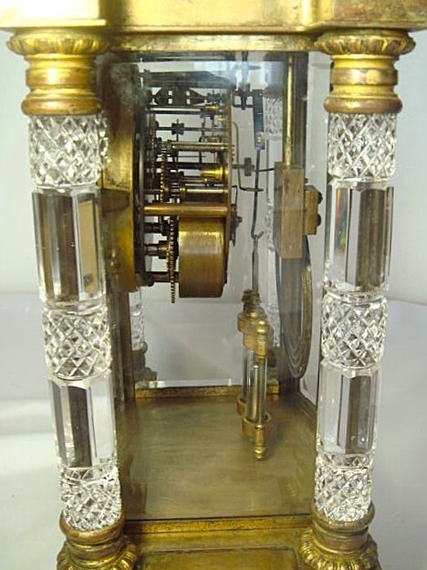 1800年後期のアメリカ アンソニアのクリスタルカットガラス4本柱装飾 振子置時計です。