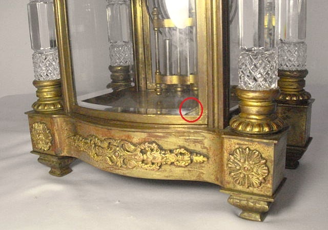 前後の湾曲面取りガラスの角に小さなヒビと 琺瑯文字盤の6時の