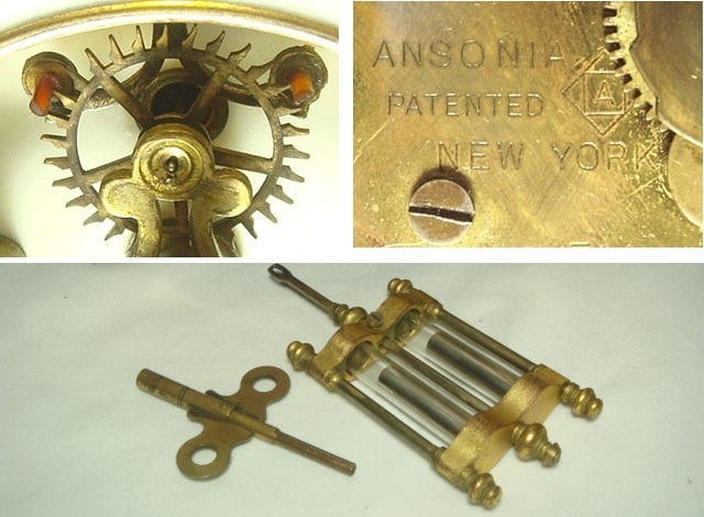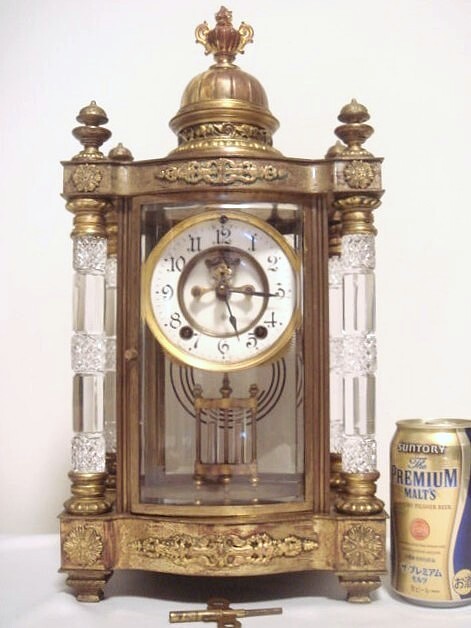 逸品★アンソニア★クリスタルカットガラス4本柱装飾 琺瑯文字盤 時打ち 振子 置時計 可動品