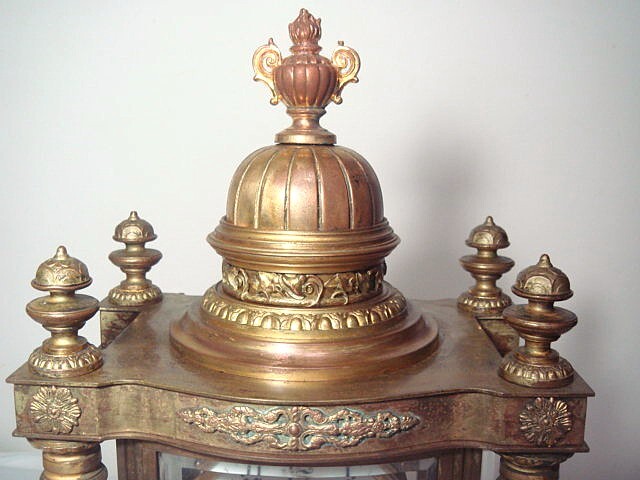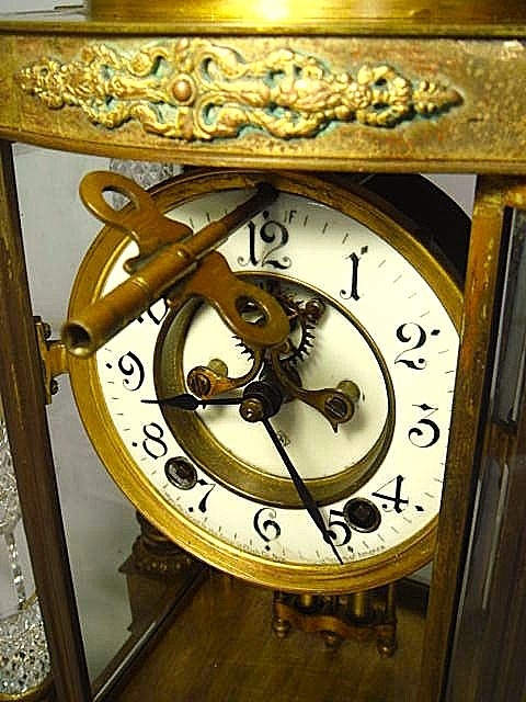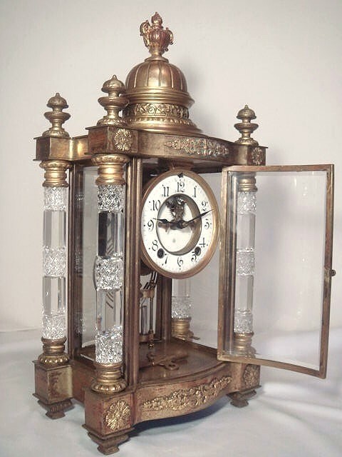 1800年後期のアメリカ アンソニアのクリスタルカットガラス4本柱装飾 振子置時計です。