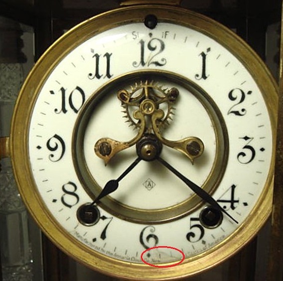前後の湾曲面取りガラスの角に小さなヒビと 琺瑯文字盤の6時の