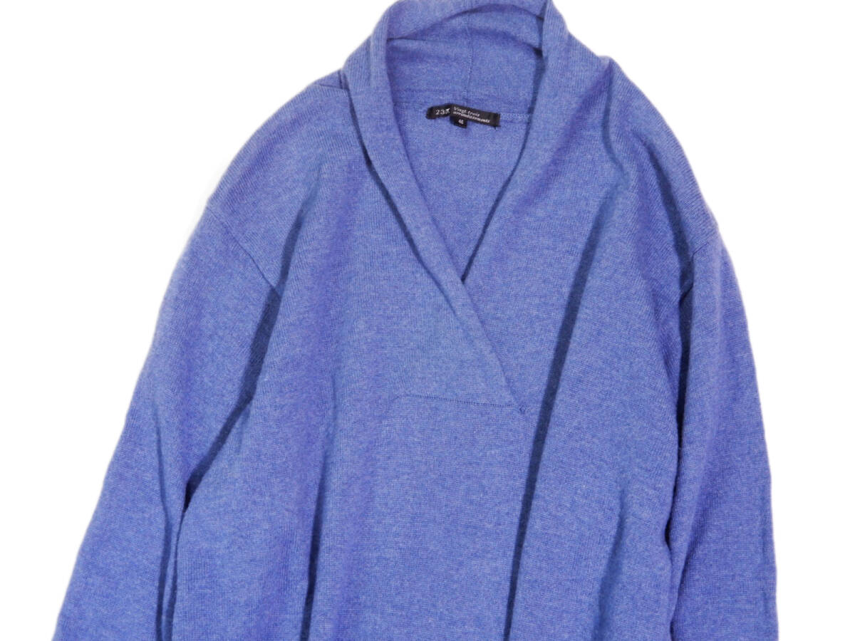 ・ 上品な風合いが魅力の、カシミヤ混ウール素材を使用した23区のチュニックワンピース ふんわりと柔らかな肌触りで、暖かさと軽やかさを兼ね備えた一枚です。 ショールカラーが優しく首まわりを包み、リラックス感のある上品なシルエット。 パンツやレギンスと合わせて。これからの季節にはブーツとも相性◎ ◇状態 :目立った傷や汚れなし ◇仕様 裏地 : なし 伸縮性 : あり お洗濯 :ドライクリーニング ◇サイズ表記 :46 ◇実寸 :肩幅40・身幅56・着丈86・袖丈54㎝位 *素人採寸ですので多少の誤差はご容赦ください ◇素材 :毛90・カシミヤ10% ◇カラー :ブルー系 * 実物に近いように撮影しておりますが、各御家庭でのモニター環境等により、お色など見え方が異なる事がある事をご理解の上、入札をお願い致します。 | ||