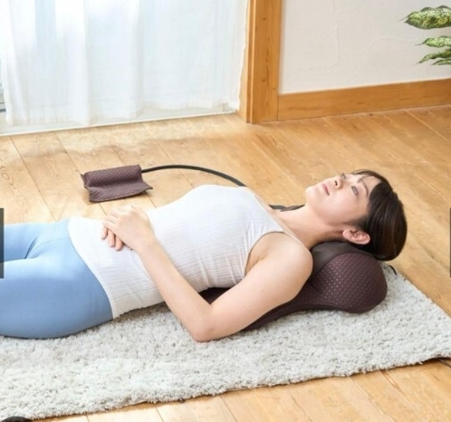 枕のように寝ながら首を乗せるだけで、首にEMSで筋肉を刺激し、首・肩・肩甲骨周りをエアバックでストレッチできます。