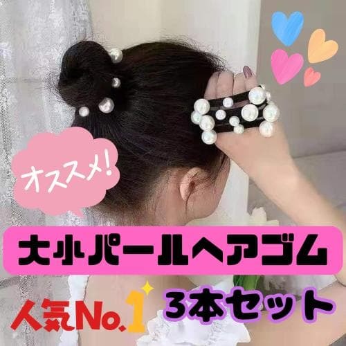 大小のフェイクパールが大人可愛いヘアゴム(^^♪