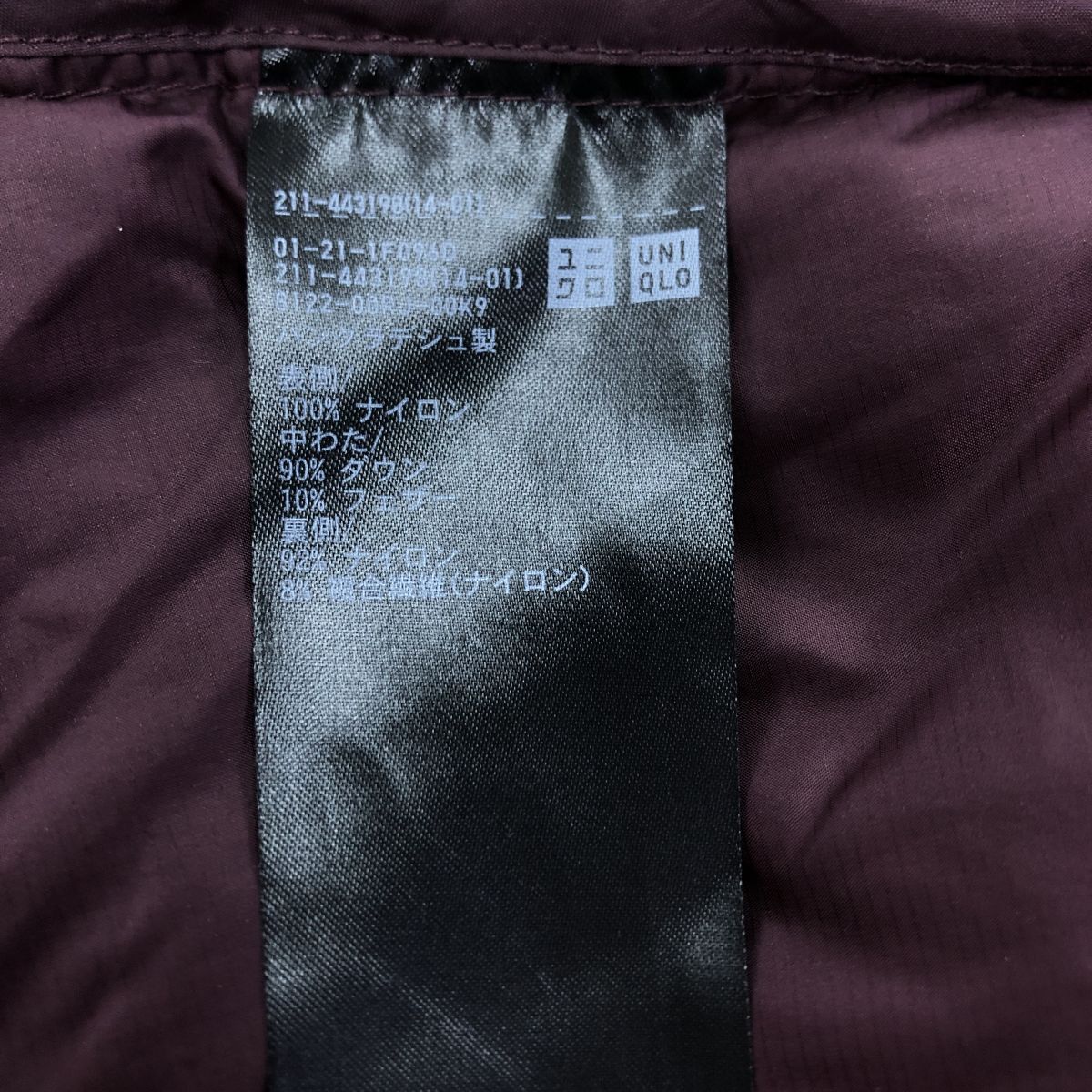 2O3256-K◆UNIQLO ユニクロ ウルトラライトダウンベスト◆sizeXL ボルドー ジップアップ スタンドカラー 軽量 暖か ダウン90% レディース