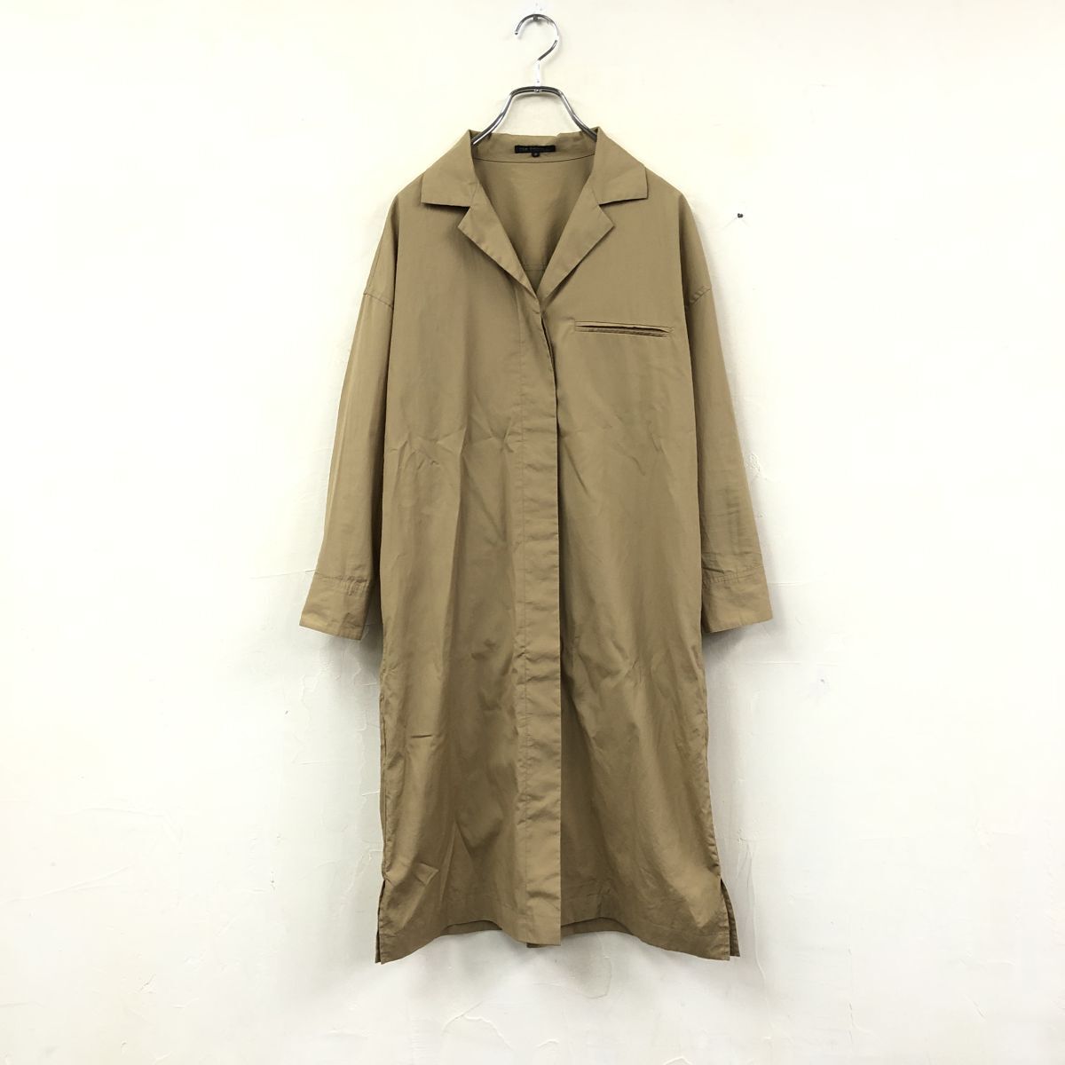 2N1015-Y-N◆23区 ニジュウサンク オープンカラーロングシャツ 比翼ボタン 無地 膝丈 レディース カジュアル ◆size38 ブラウン系 綿