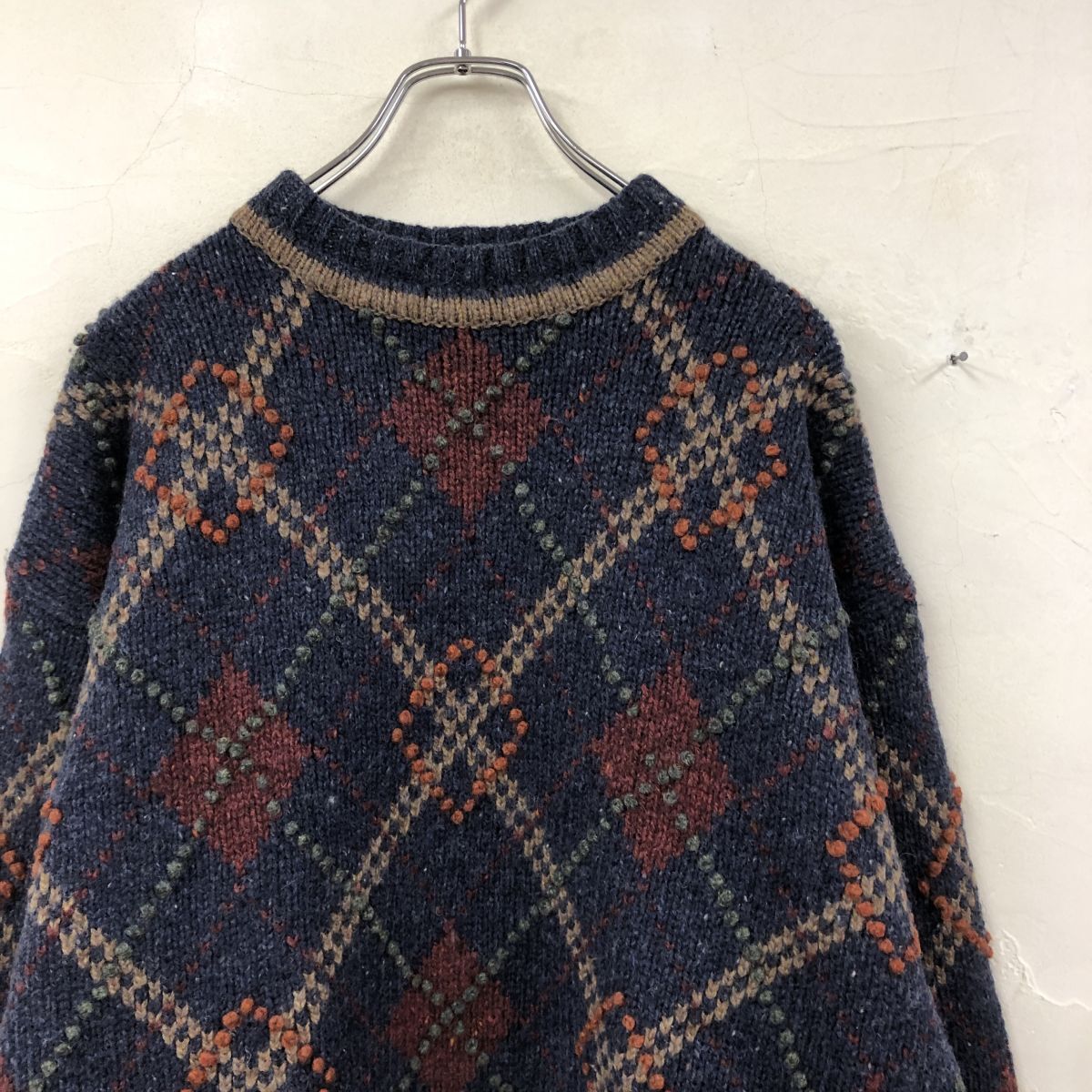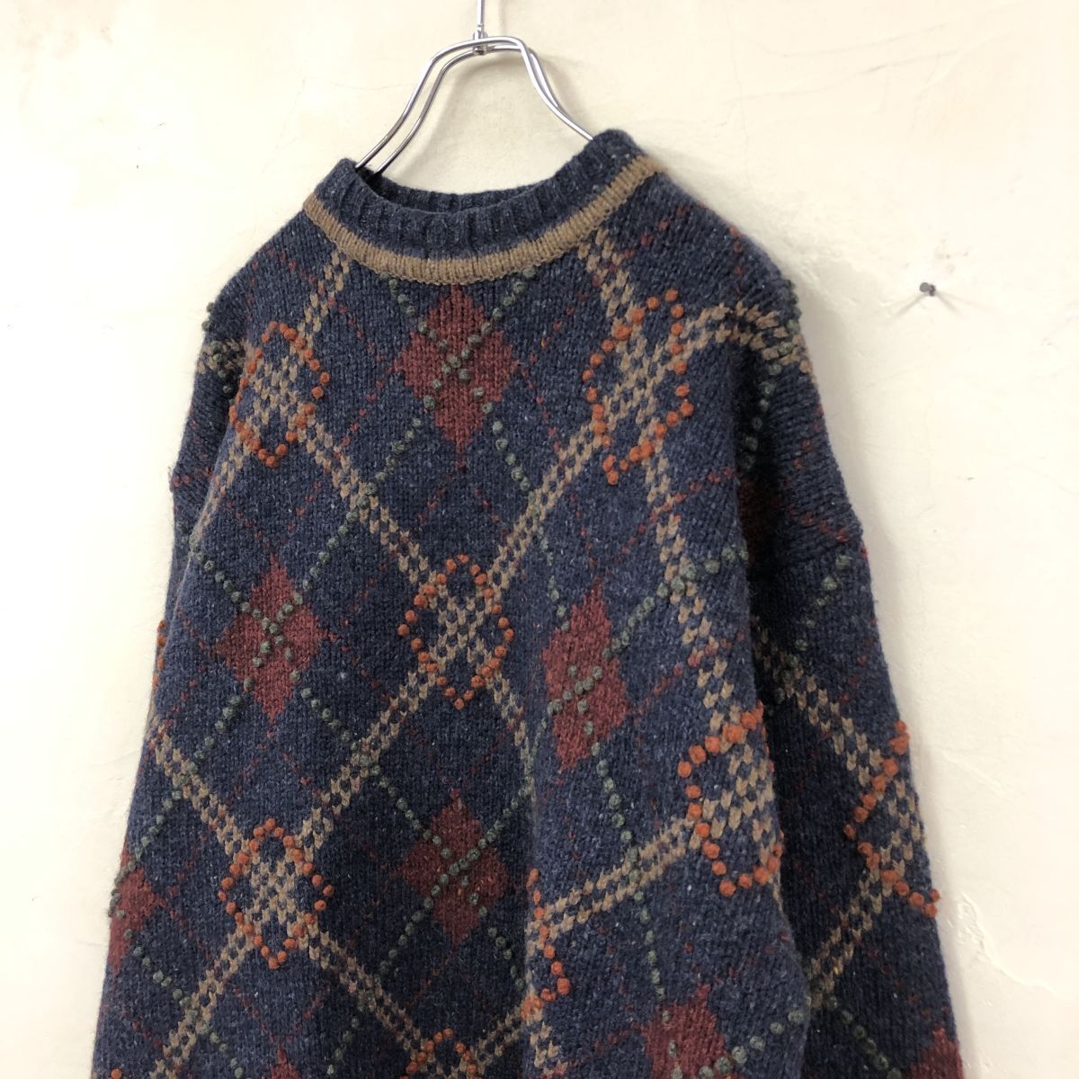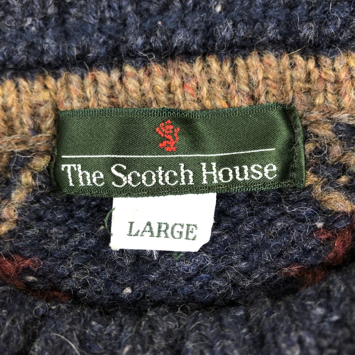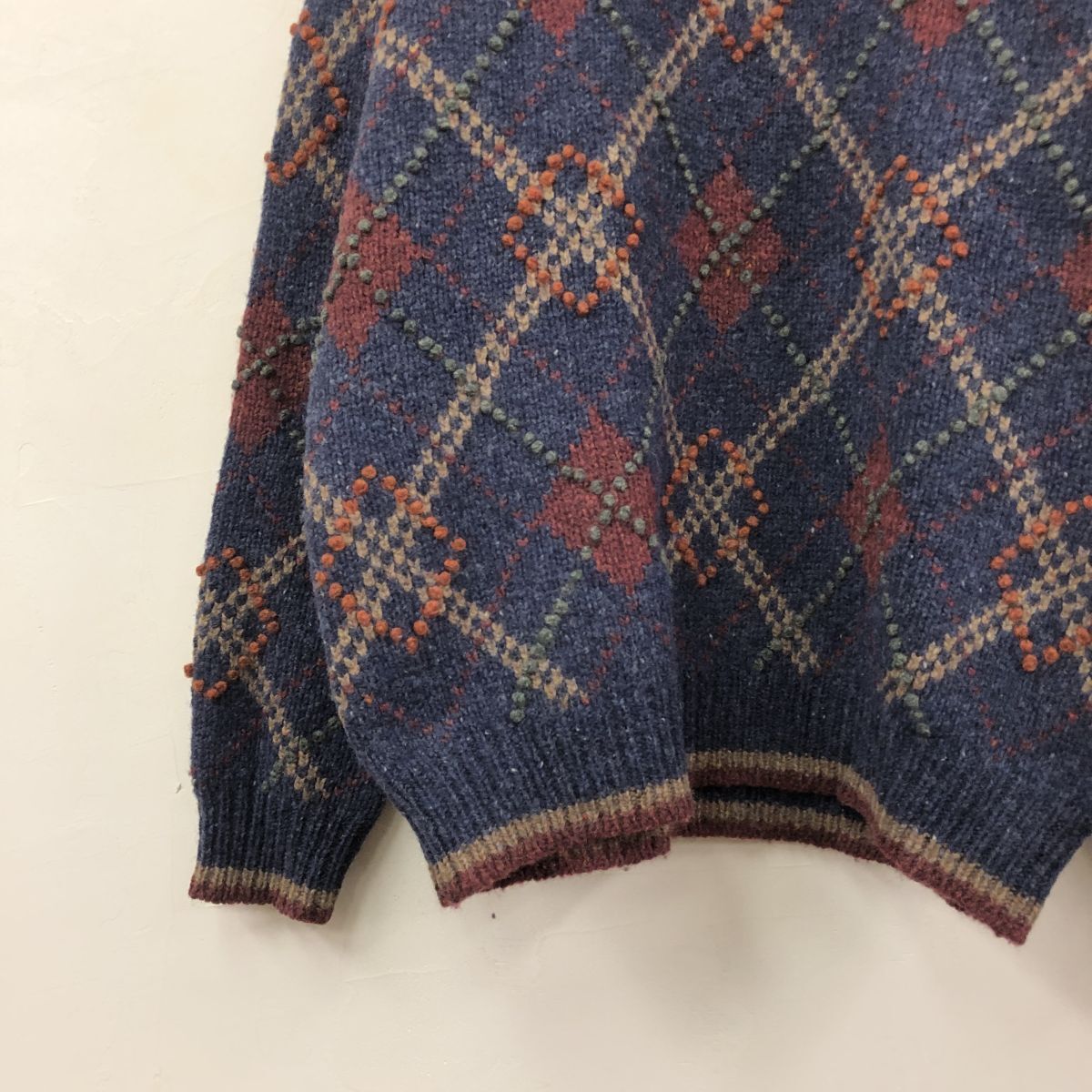 2N1097-Y◆THE SCOTCH HOUSE スコッチハウス アーガイルセーター ウールニット ローゲージ 総柄 メンズ カジュアル ◆sizeL ネイビー 毛