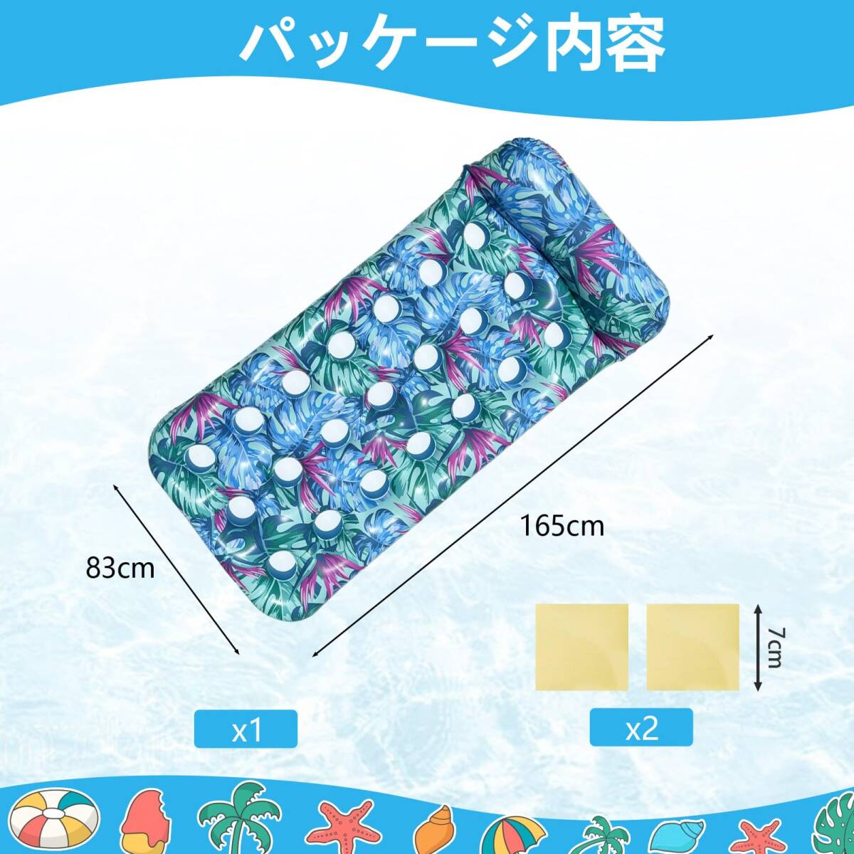 浮き輪 大人用 ウォーター ハンモック 水上 フロート マット プール 浮き具 ボート 水遊び ビーチ インフレータブル フロート マット フローティング ベッド プール マルチカラー 修復パッチ 2枚付き