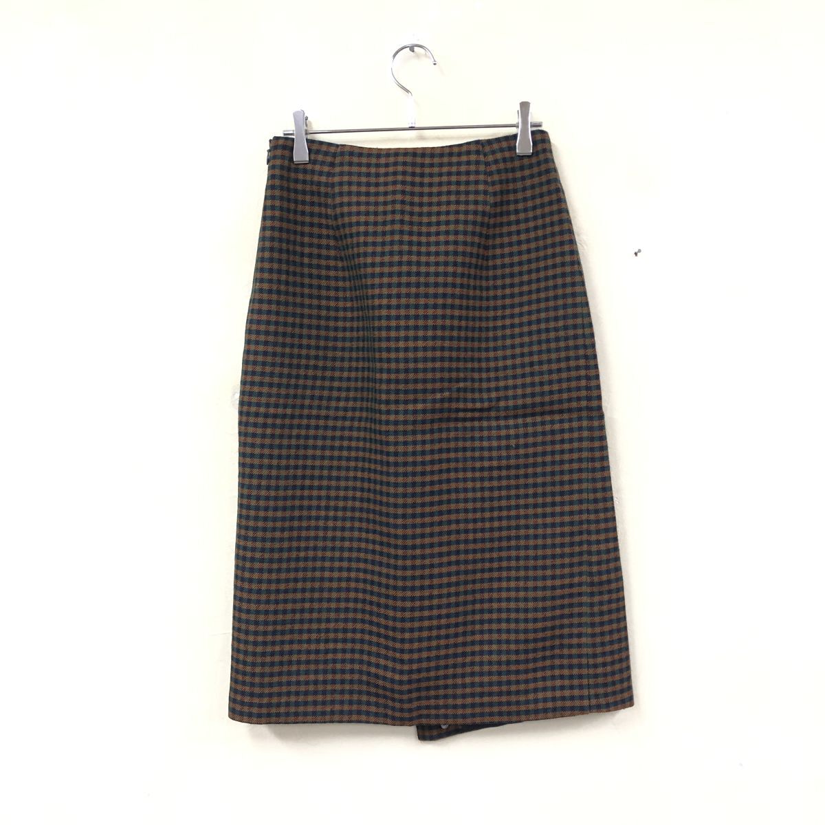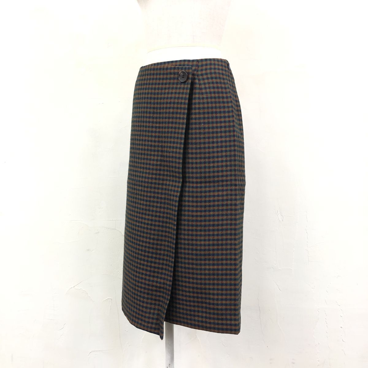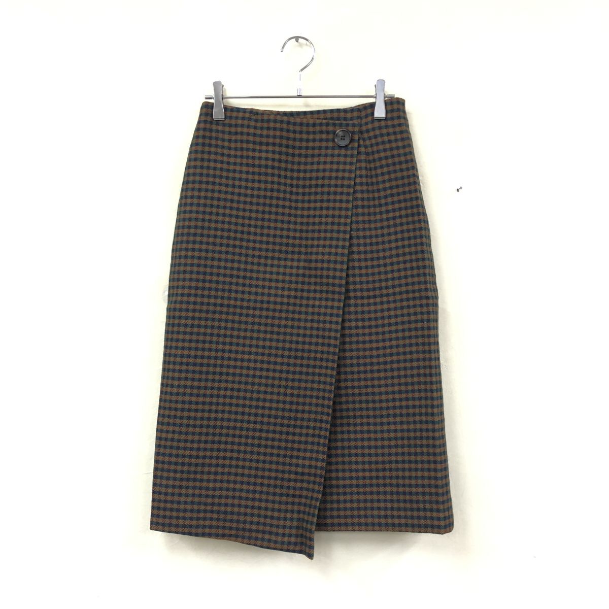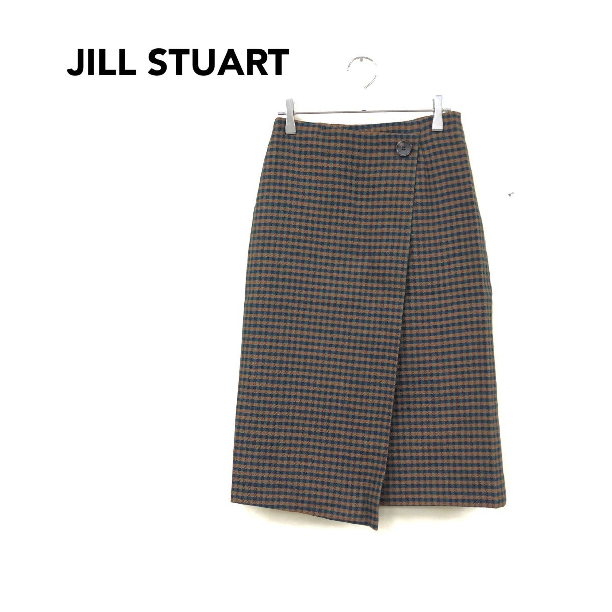 2O3418-Y◆JILL STUART ジルスチュアート ウールラップスカート 膝下丈 チェック柄 裏地あり レディース ◆size0 ブラウン ネイビー 毛