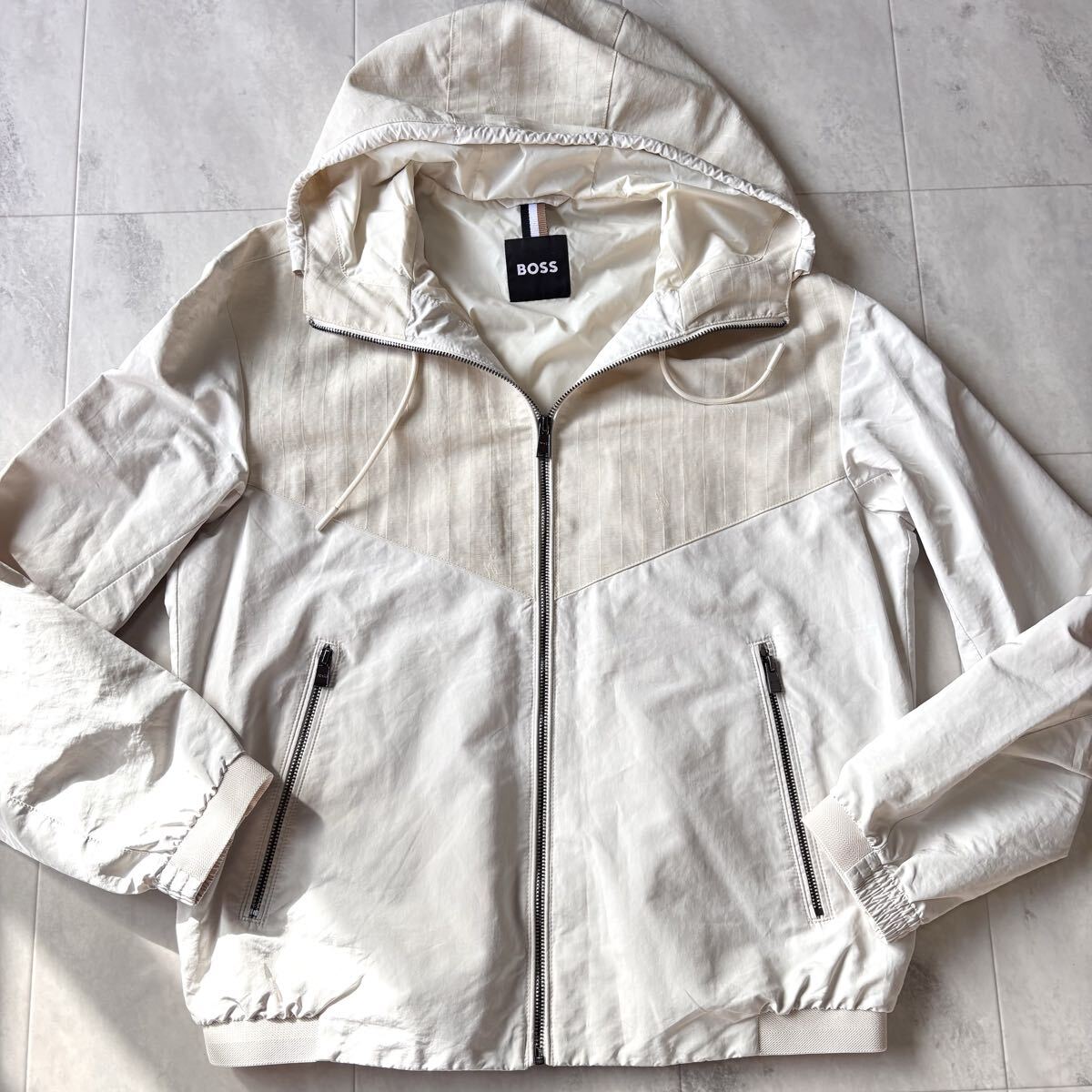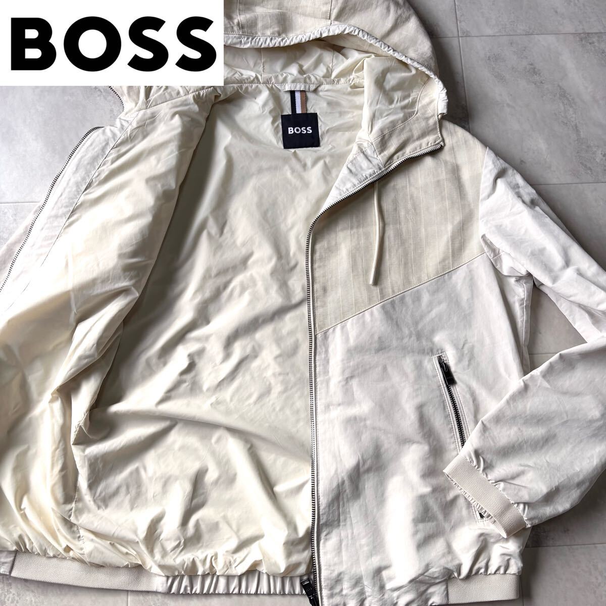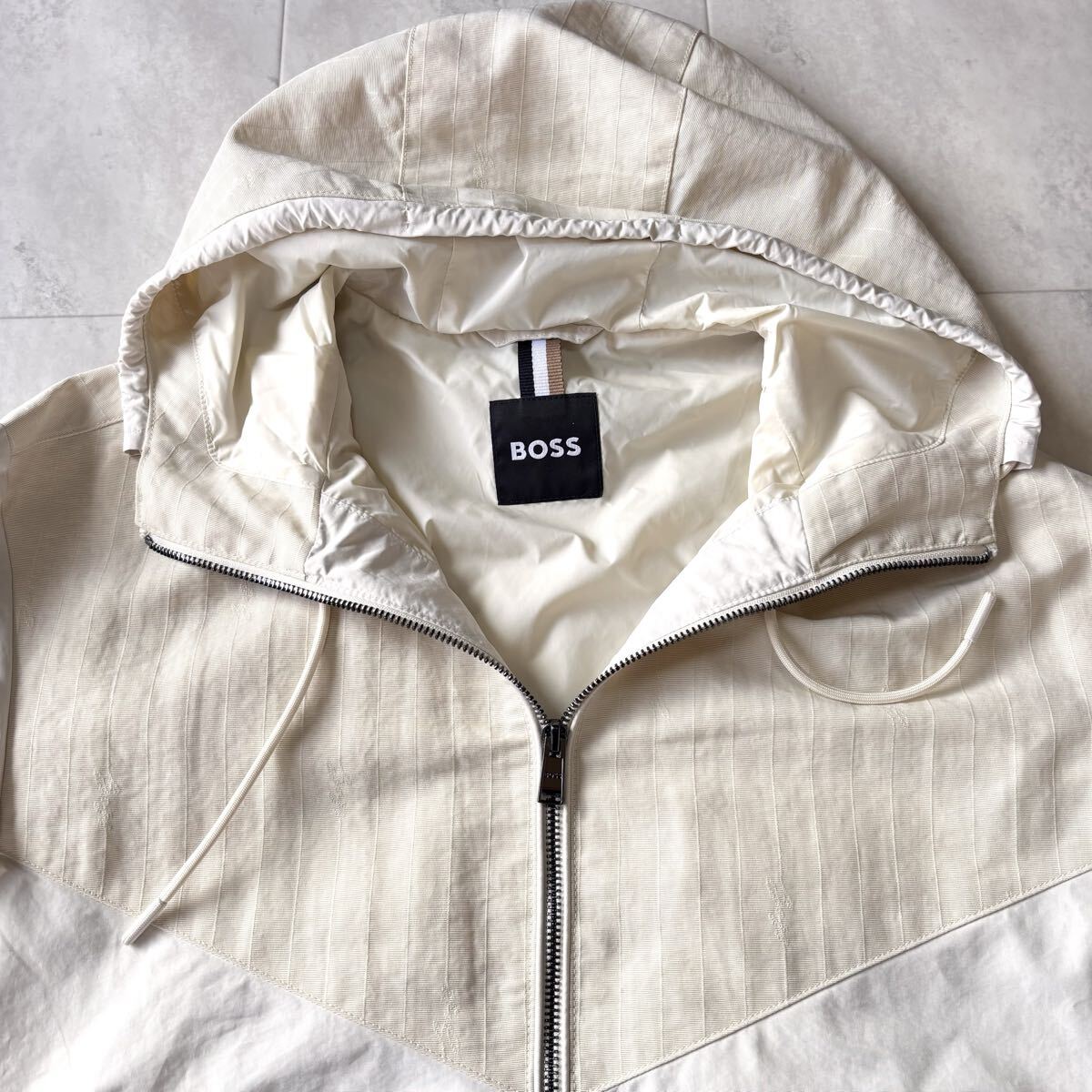 【未使用級 現行 Lサイズ】ヒューゴボス HUGO BOSS ジャケット ブルゾン フード 刺繍ロゴ フルジップ 48 ハイネック 大谷翔平 オフホワイト