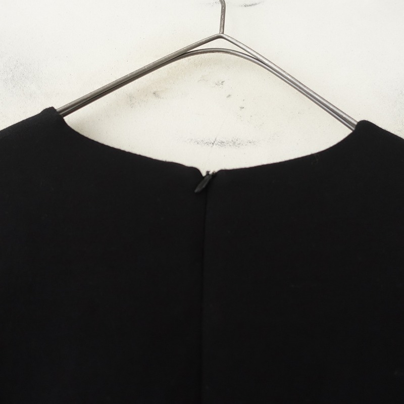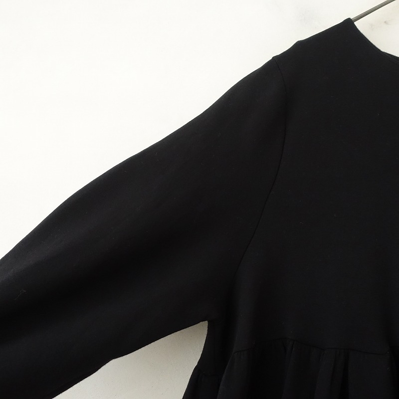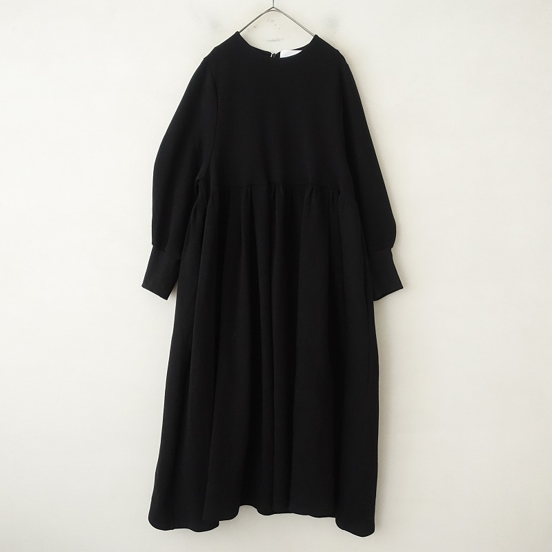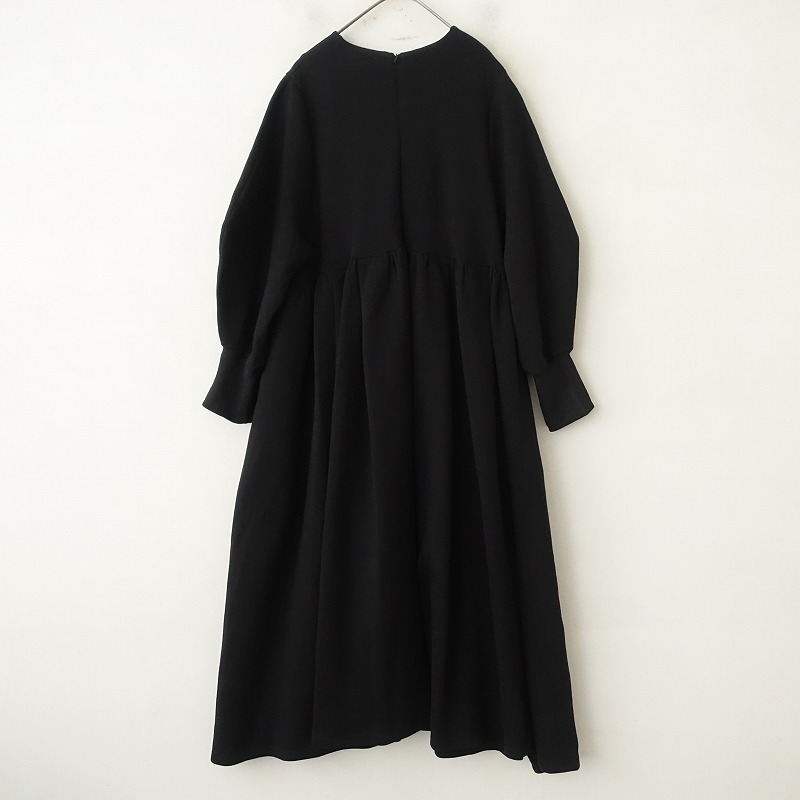 | Aya×CAROLINA GLASERのコットン混ギャザーワンピースです。カラーはブラックで、ストレッチ感とやや膨らみ感のある少し厚手素材です。バックセンターファスナー開閉式のノーカラータイプで、袖口はリブ生地になっております。ウエストラインで切替ギャザーが施されており、左右ウエストにシームポケットがございます。重さ約1.3kgで、定価(メーカー希望小売価格)22000円の商品です。 |