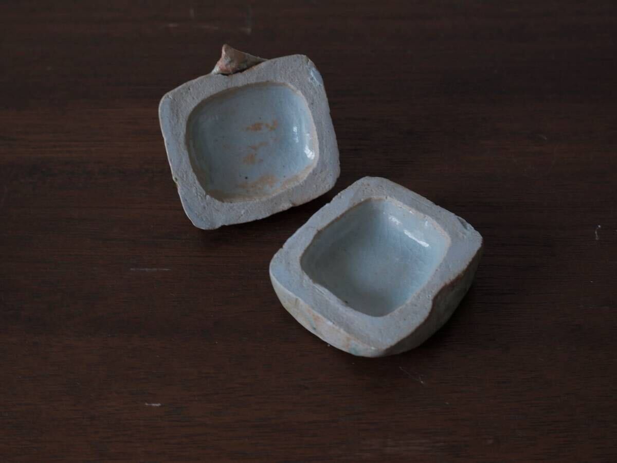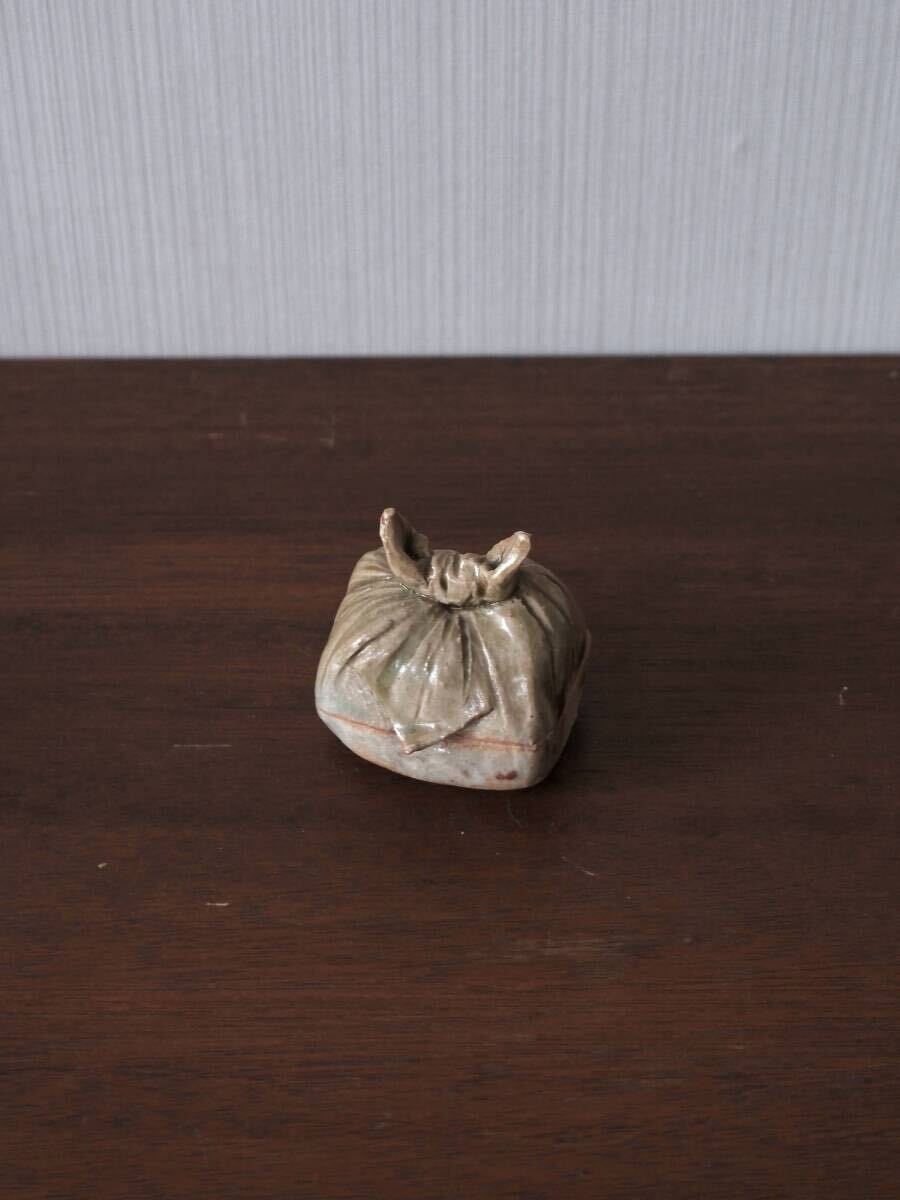 【青枠】風呂敷包み型 香合 陶磁工芸 香道具 茶道具 「清」銘あり 古道具 時代物 美術品Q2067