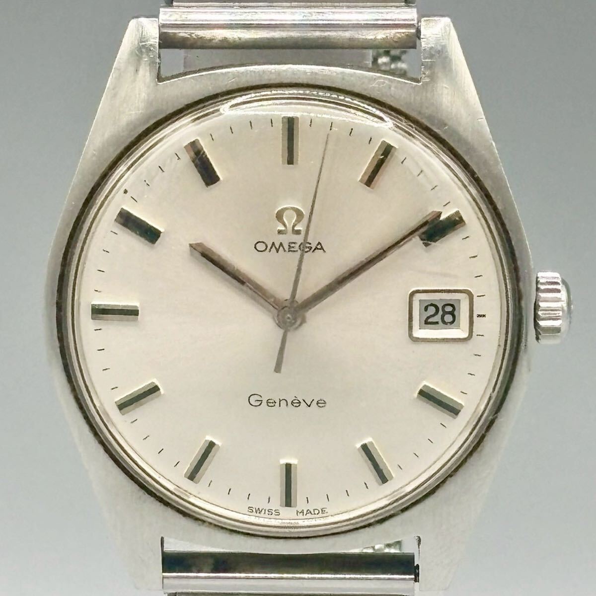 1円 OMEGA オメガ ジュネーブ デイト 手巻き 腕時計 シルバー文字盤 稼働 Geneve ref.135.070