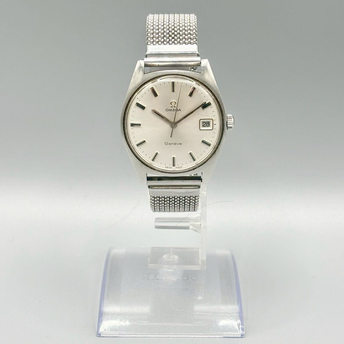 1円 OMEGA オメガ ジュネーブ デイト 手巻き 腕時計 シルバー文字盤 稼働 Geneve ref.135.070