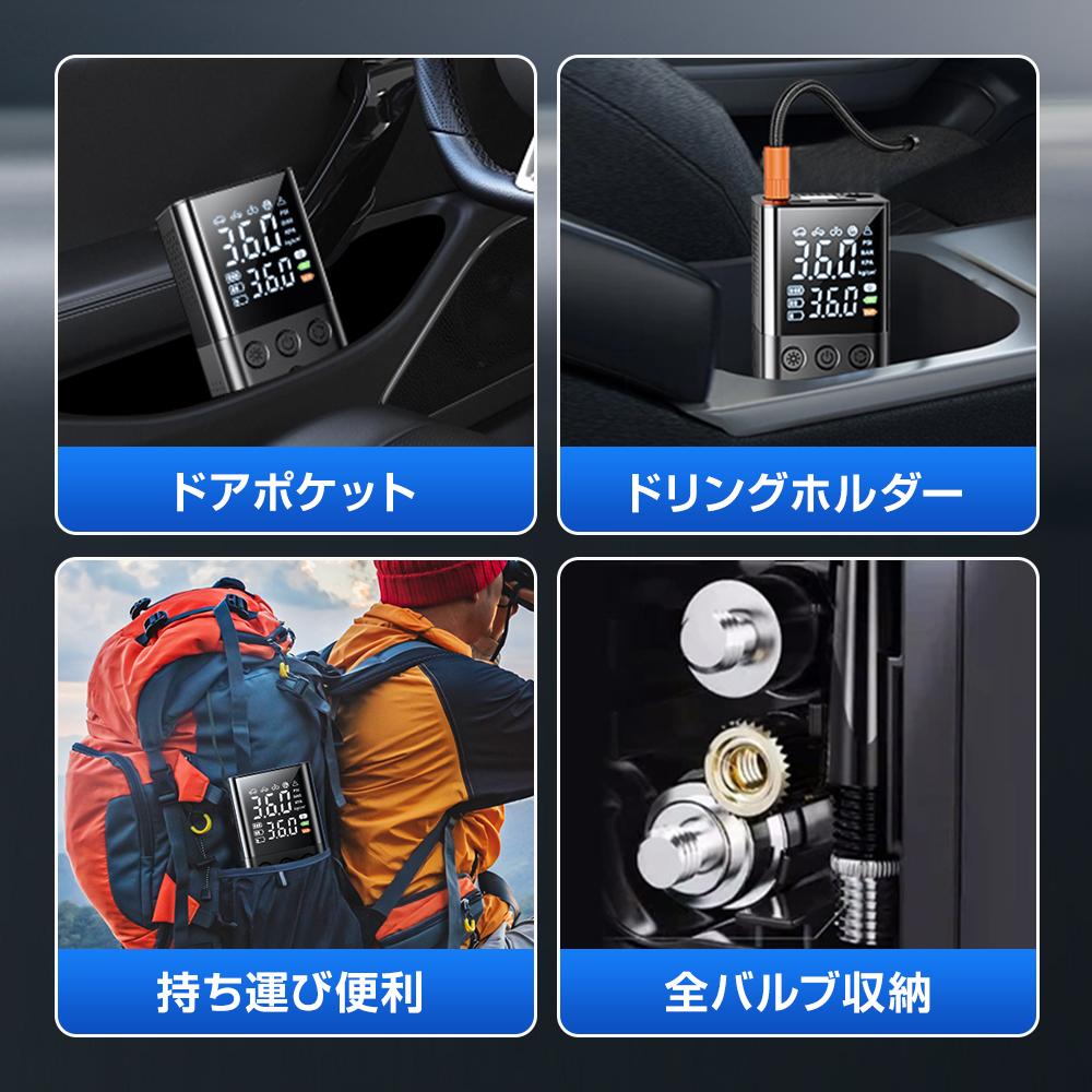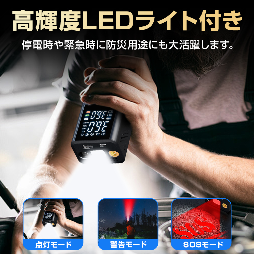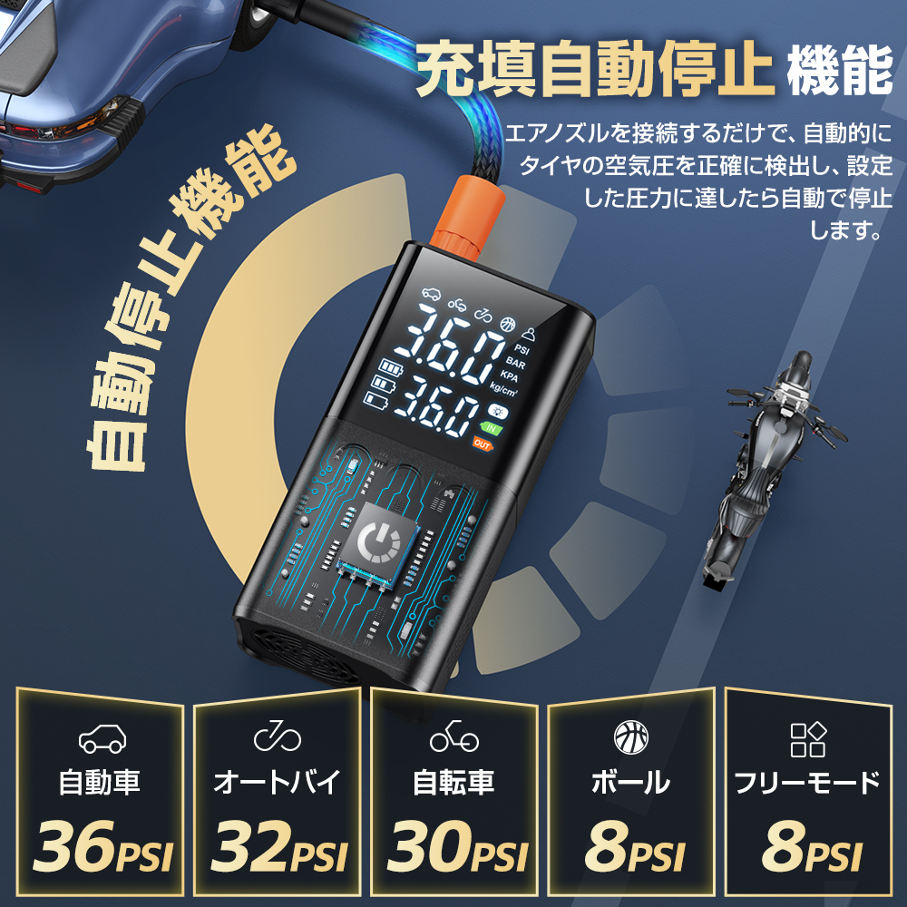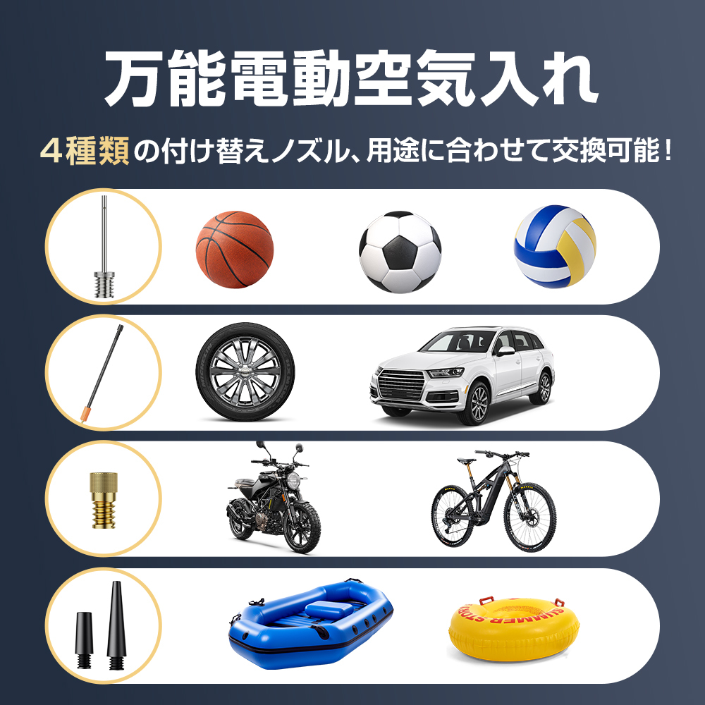 電動 空気入れ 電動空気入れ 自動車 エアーポンプ 充電式 車 バイク 自転車 ボール タイヤ 懐中電灯