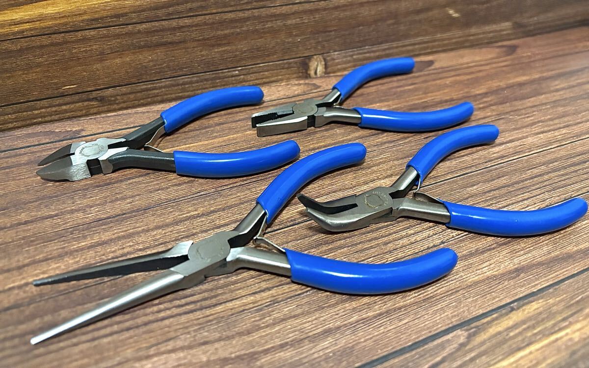ペンチ、プラスチックニッパー、ロングノーズプライヤー、ベントノーズプライヤーの4本セットです。