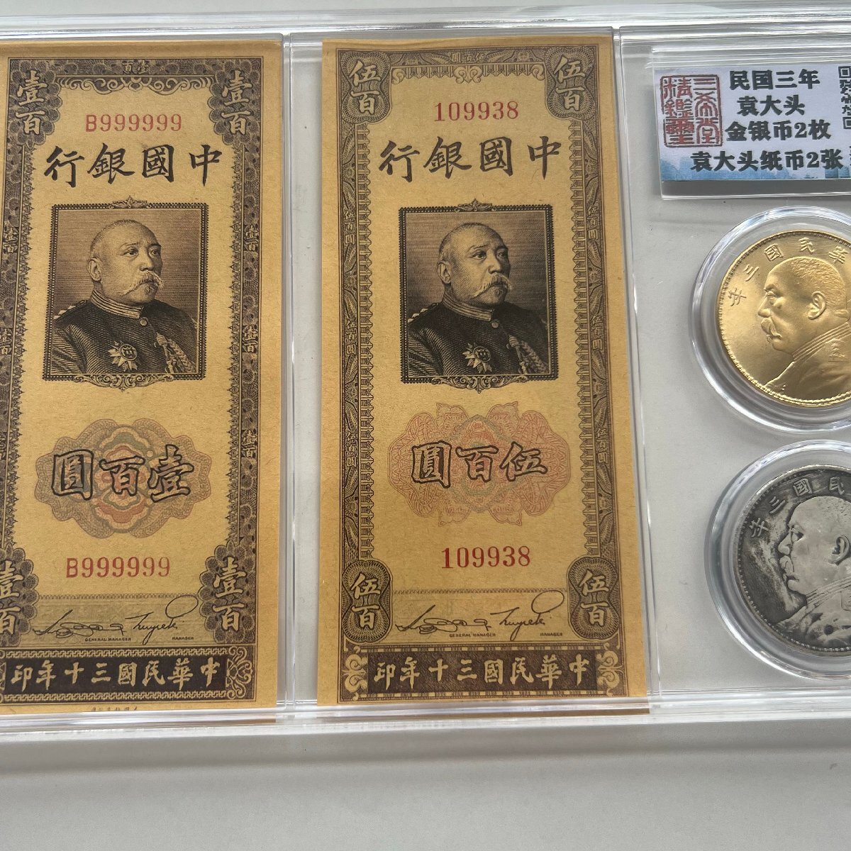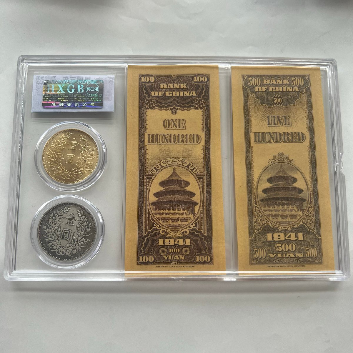 送料無料 中国 紙幣+銀銭セット 中華民国 袁世凱 銀票 紙幣 銀元 硬貨 美品 外国紙幣 郵便発送 ZH578
