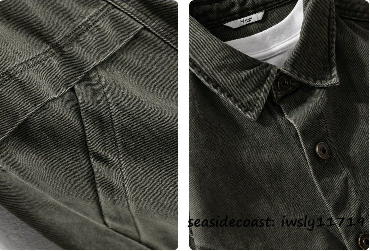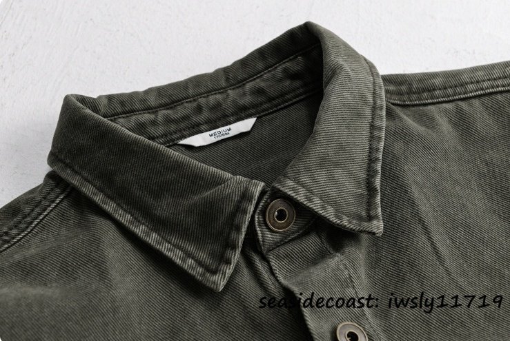 春秋新品*ワークシャツ メンズ 無地 長袖シャツ アメカジ ワークジャケット ミリタリー 古着風 アウター ジャンパー ゆったり オリーブ XL