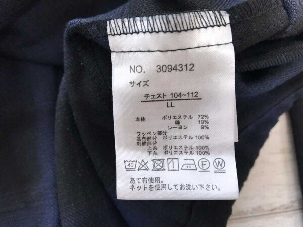 サイズはLLで着丈75cm、身幅60cm、袖丈60cm です。