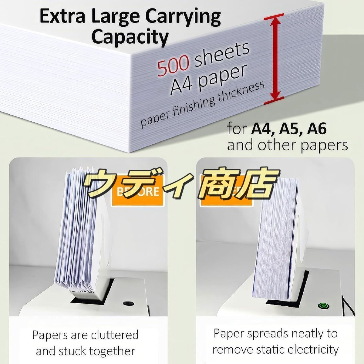 仕分け:機械内部に高出力高速ターボファンを搭載しており、強力な風で静電気を除去します。A4用紙を500枚まで処理できます。