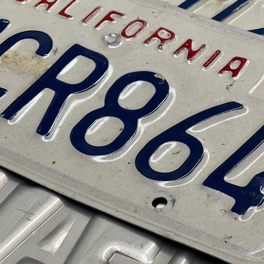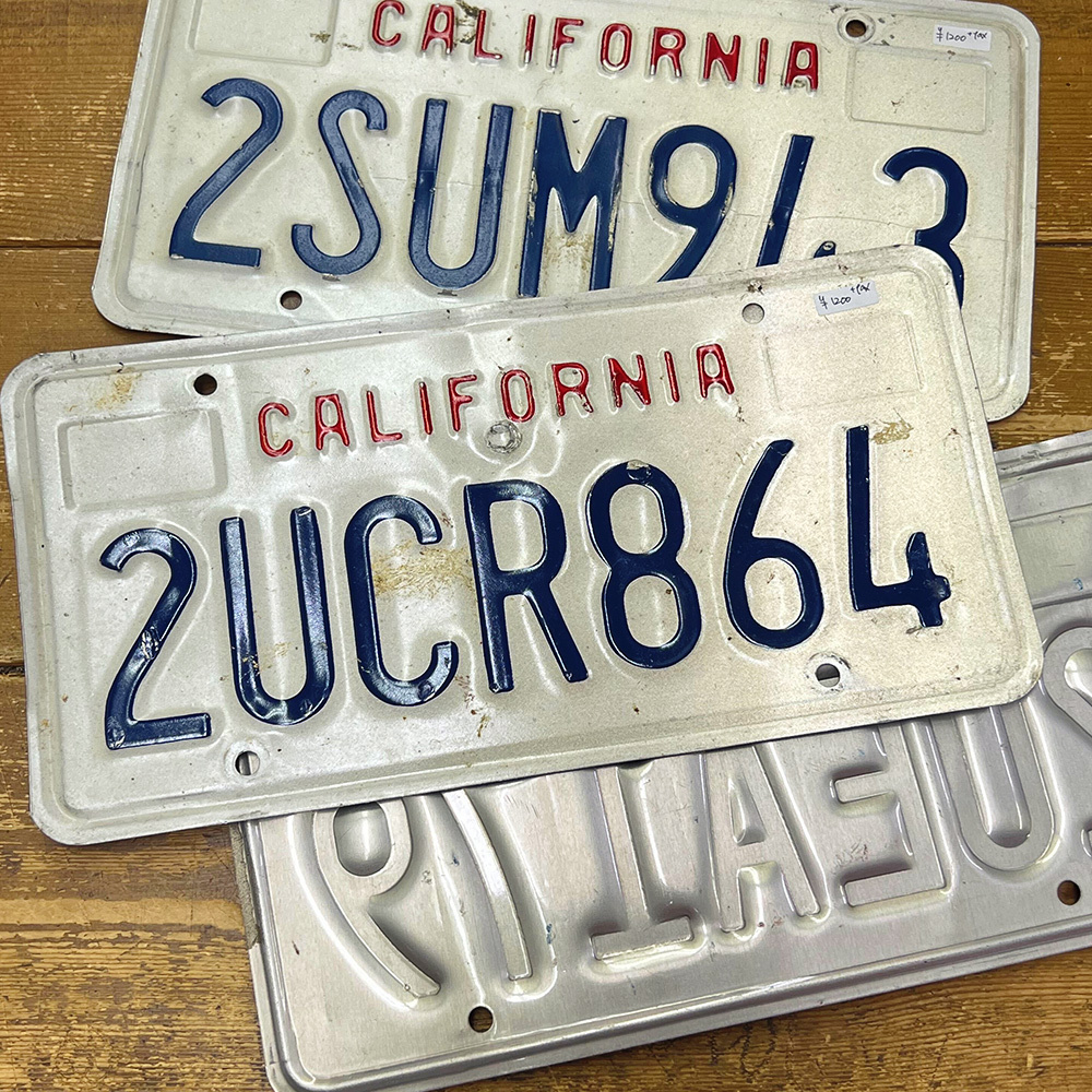 只今、Yahoo出店10周年記念といたしまして、追跡メール便なら送料無料でサービスいたします!! アメリカ現地で購入したナンバープレートです。こちらの品はシール無しのものとなります。 数あるアメリカのナンバープレートの中でも、特に人気の高いカリフォルニア州のナンバープレートです。 2000年まで発行されていたカリフォルニア州の実際に使用されていたナンバープレート(USED)で、 本物ならではの汚れや風合いが最高にかっこいい一品です。 こちらはカリフォルニアナンバープレート1枚の価格です。 複数枚をご希望の方は、ご希望の数量をご注文ください。同梱にて発送させていただきます。 サイズ:約15.4×30cm ※番号はお選びいただけません。ご了承いただけますようお願い申し上げます。 ※実際にアメリカで使用されていたもので汚れや傷などがございます。あらかじめご了承ください。※実店舗や他の販売サイトと在庫を共有しているため、売り違いが発生する可能性がございます。その際には、何卒ご理解いただけますようお願い申し上げます。お客様にはご迷惑をおかけしないよう、努めてまいります。