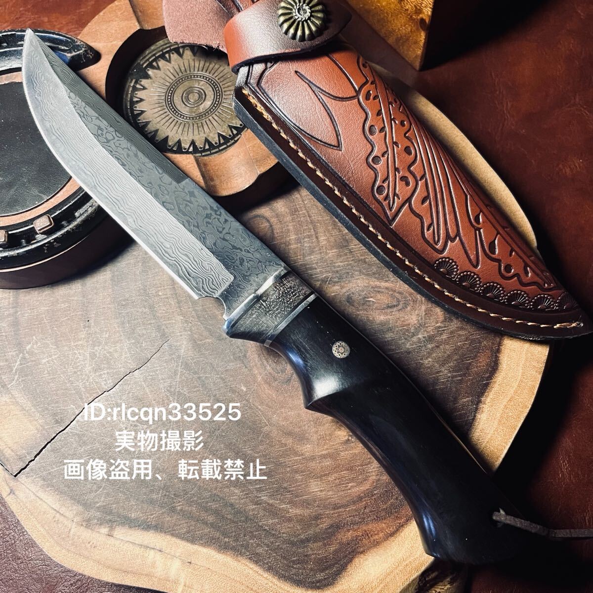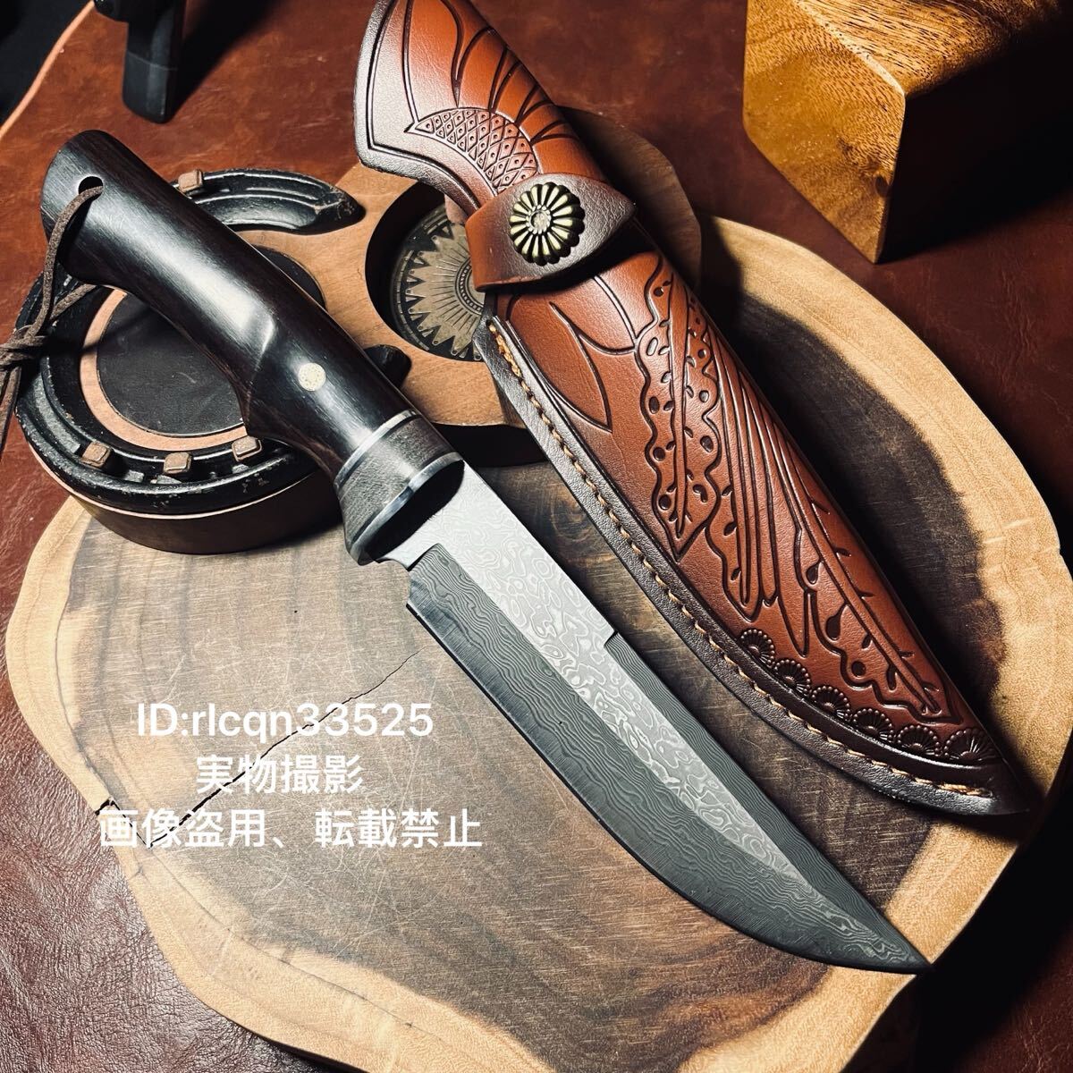 超高品質 アウトドアナイフ シースナイフ ダマスカス鋼製 刃厚4mm 薪割り シース付き キャンプ 釣り ハイキング 野外登山 27cm